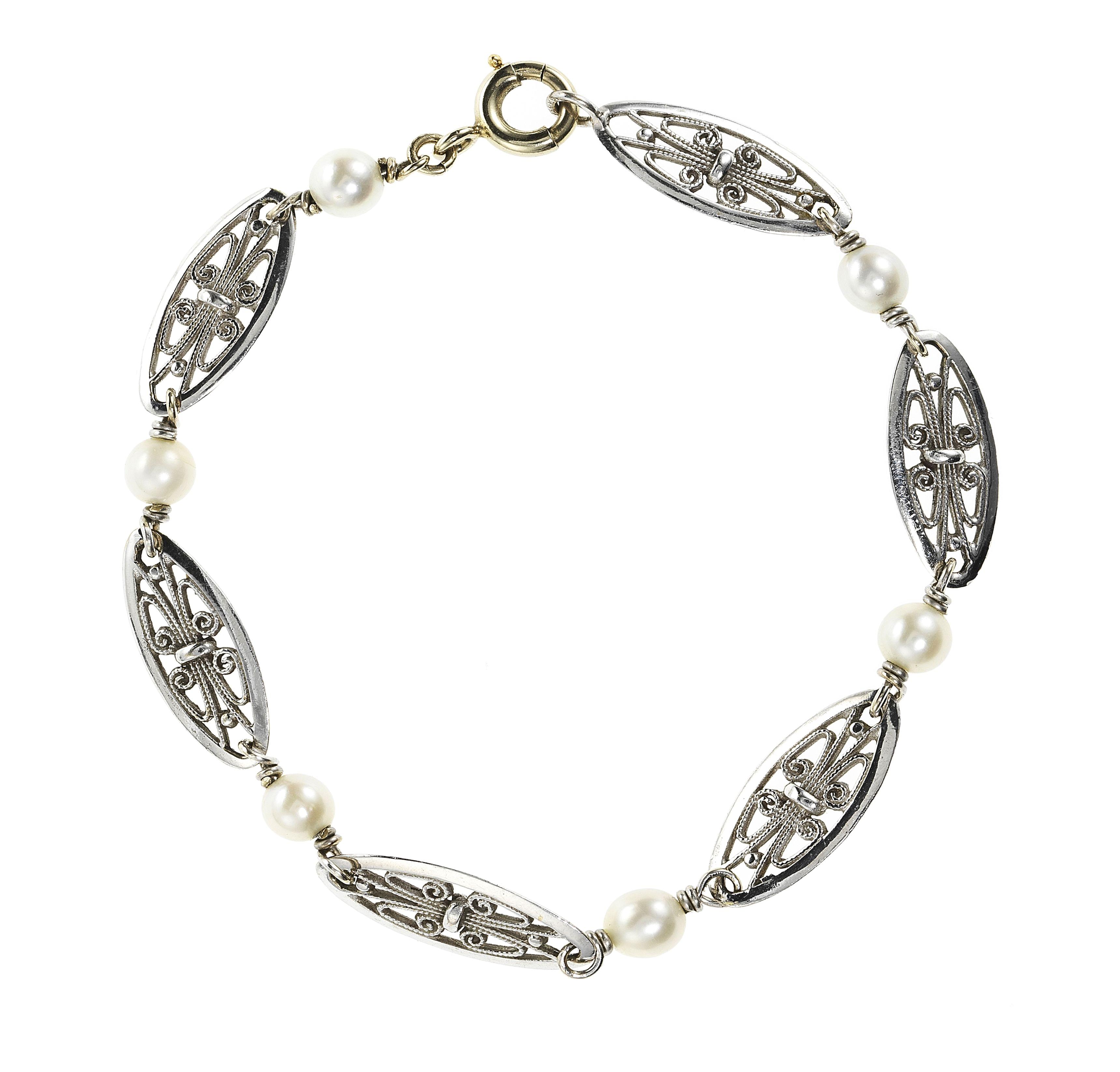 3300. *Bracelet à motifs filigranés alternés de perles (D env. 5 mm)