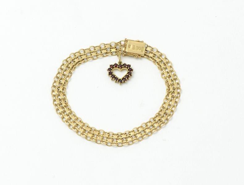 3198. Bracelet ajouré retenant un pendentif cœur serti de grenats