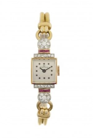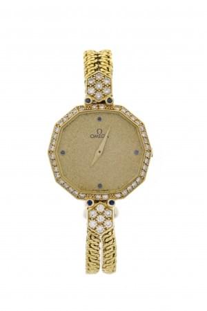 870. Omega, montre bracelet ronde mécanique sertie de diamants