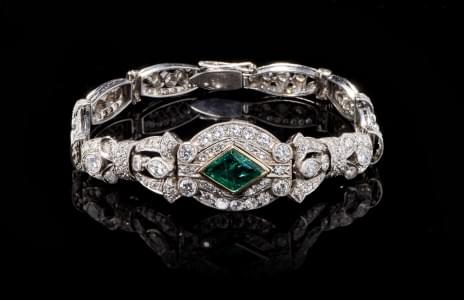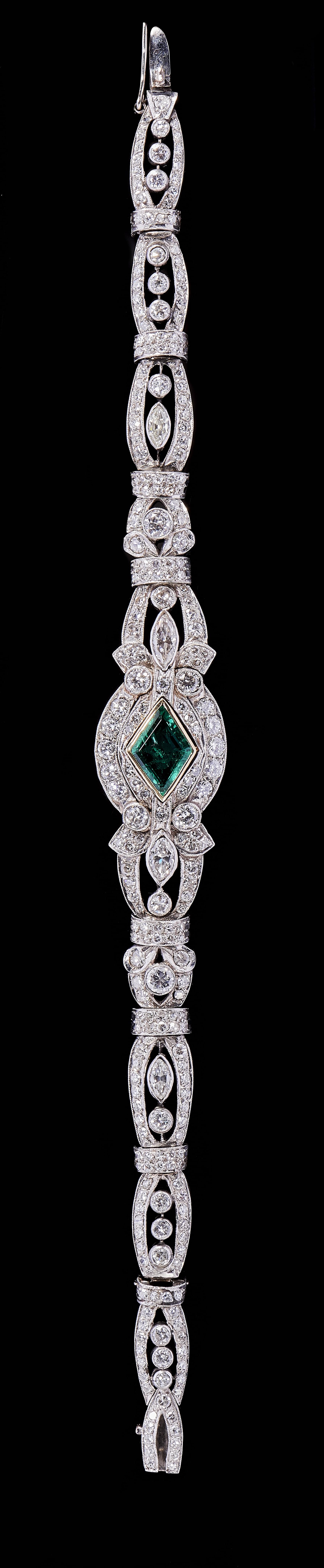 625. Bracelet Art déco centré d'une émeraude colombienne (env. 2,2 ct) et pavé de diamants (env. 8 ct)
