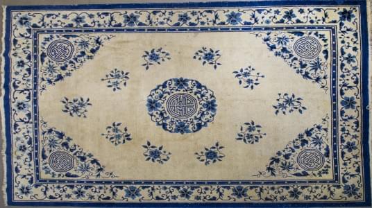 Laine à motifs floraux et géométriques sur fond crème, 330x235 c...