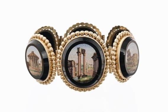 56. Bracelet composé de six motifs ovales en micro-mosaïque représentant des vestiges de monuments romains