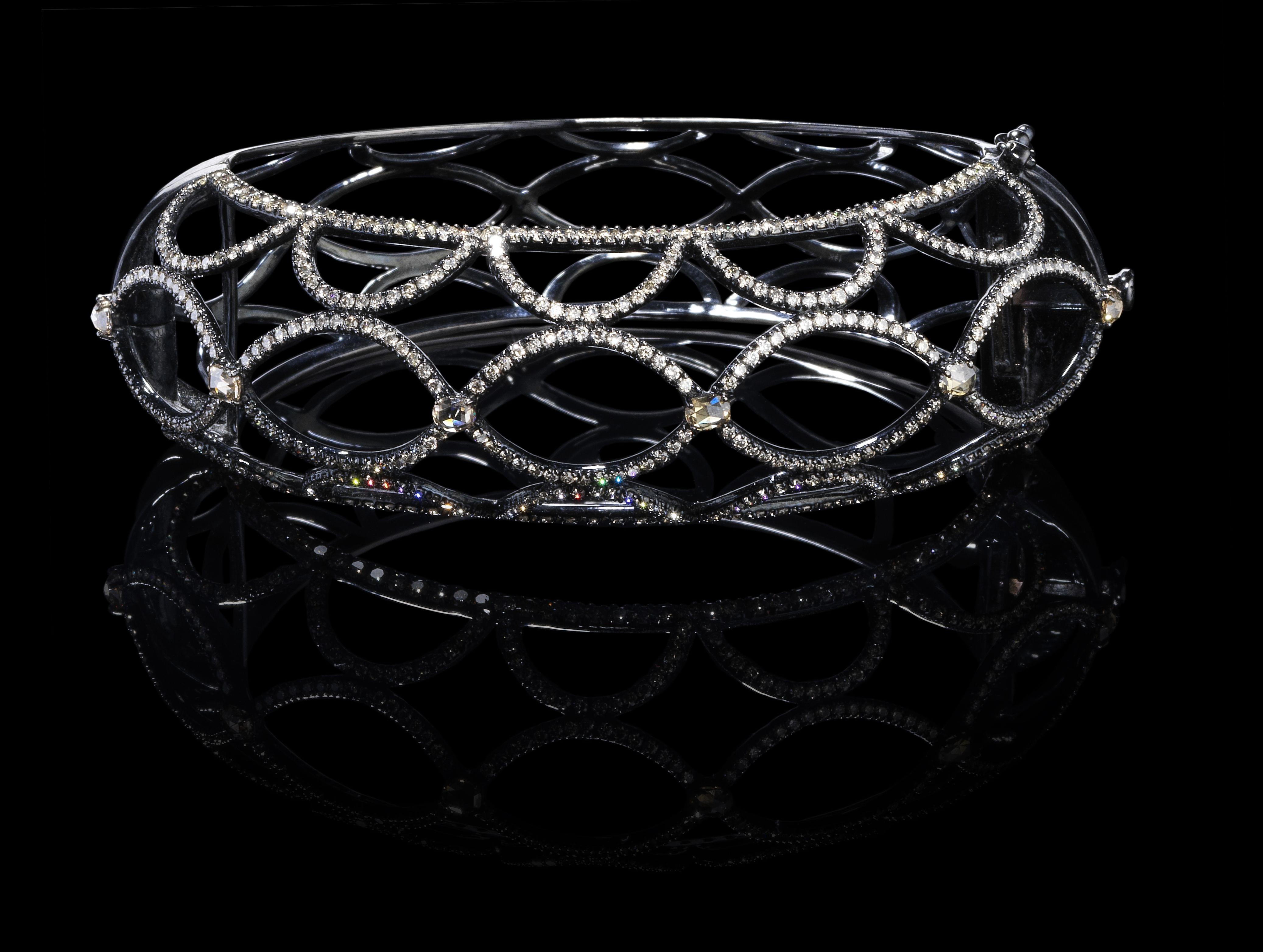 Cadran gris, aiguilles et index bâtons noirs, or gris 750, 22x22...