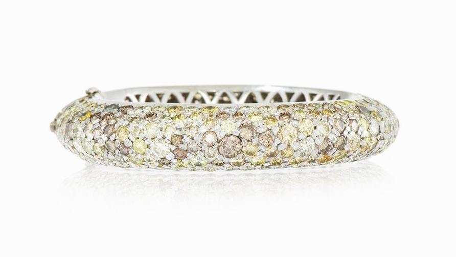 Cadran nacré serti de diamants, aiguilles, chiffres romains arge...