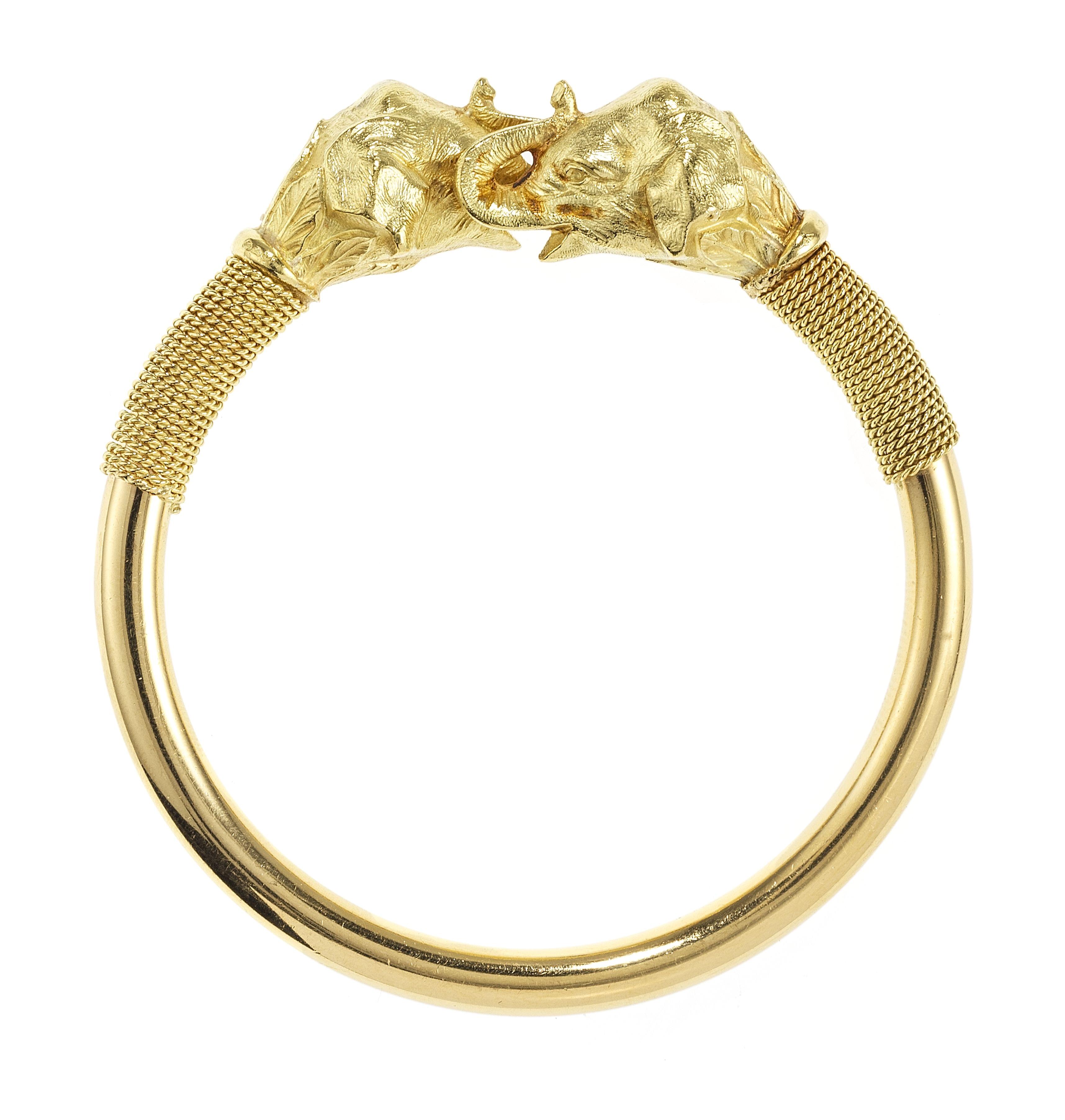 3465. Bracelet jonc orné de deux têtes d'éléphants affrontées