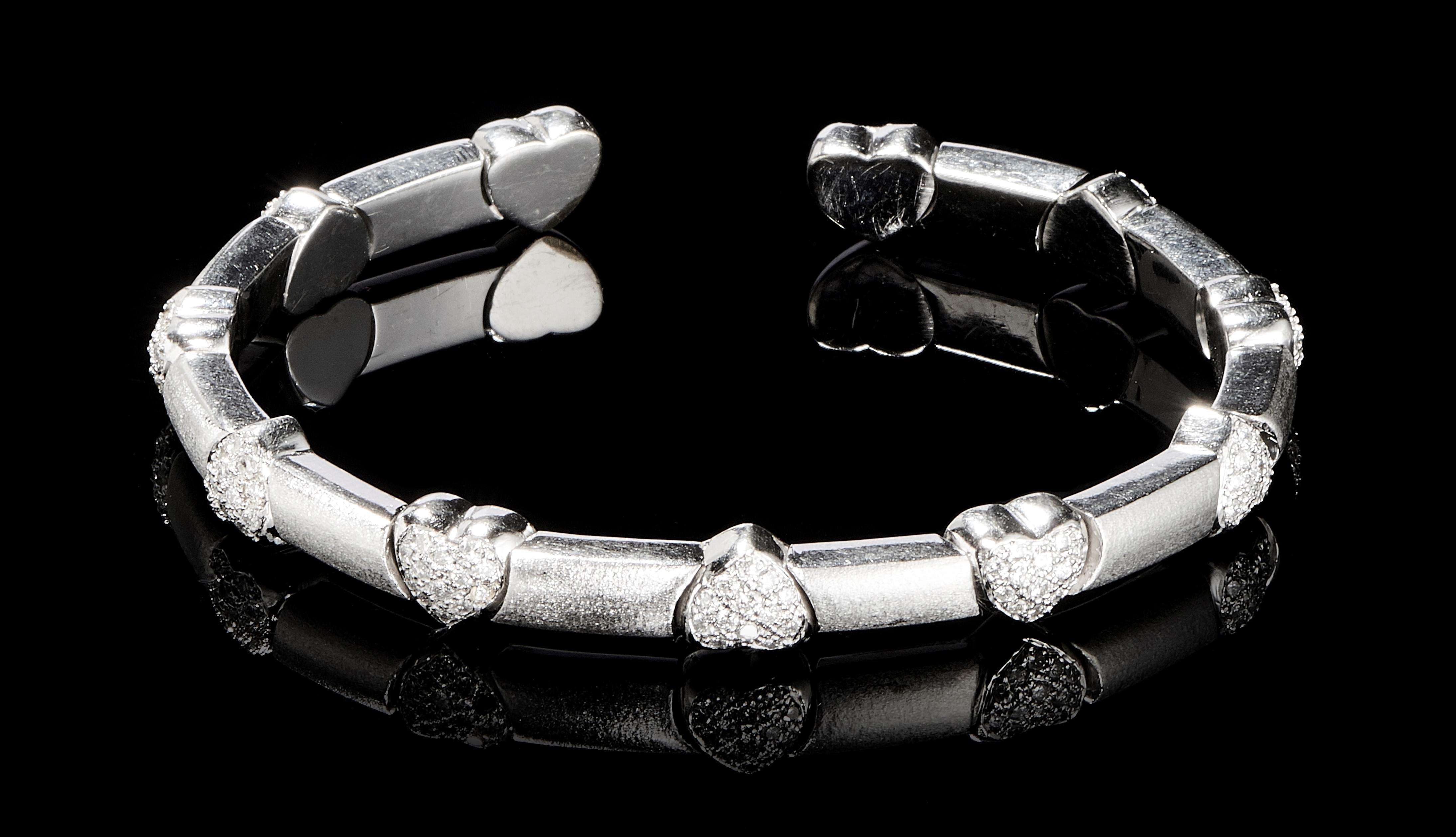 148. Bracelet jonc ouvert à décor de cœurs pavés de diamants