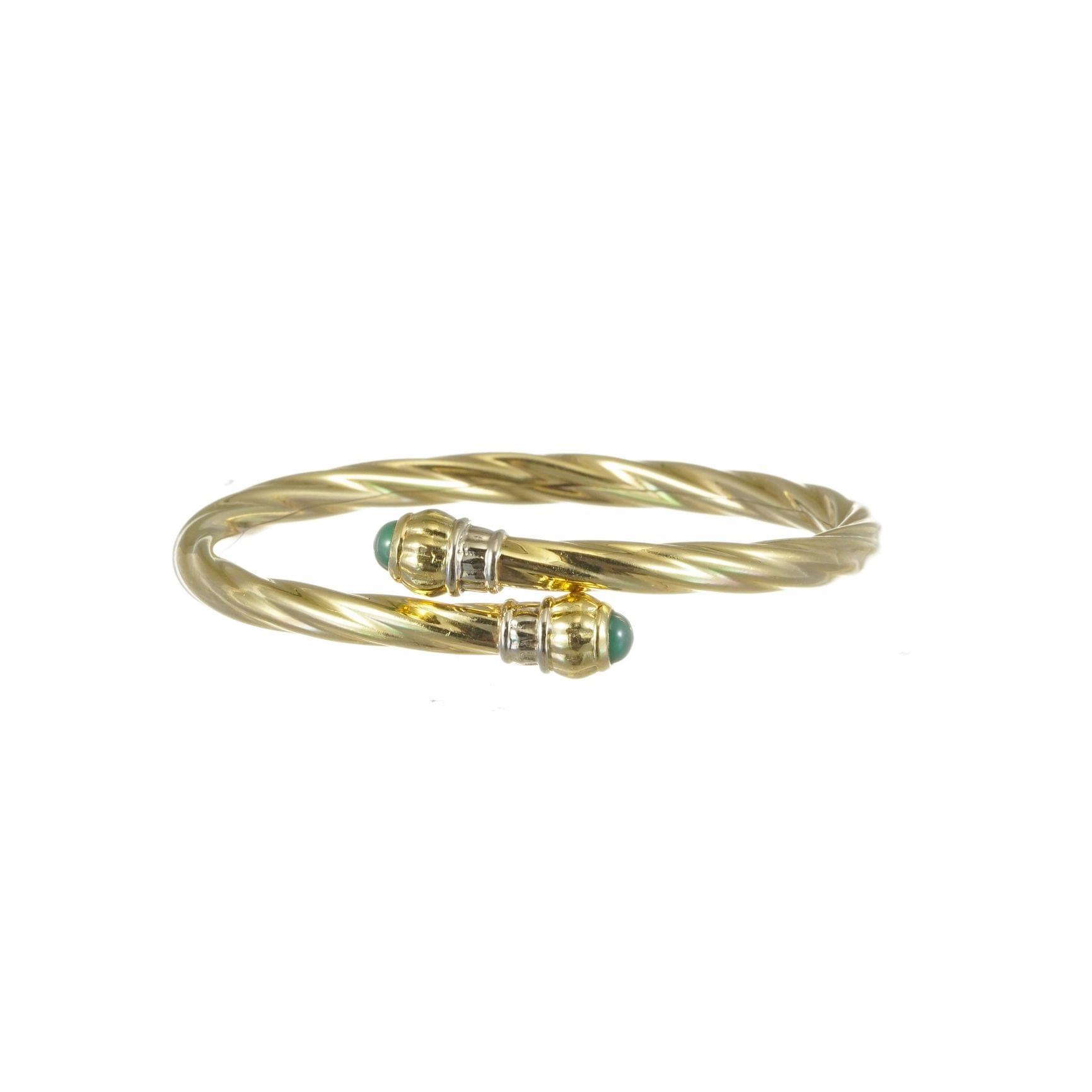 3370. Bracelet jonc ouvert torsadé serti d'agates vertes