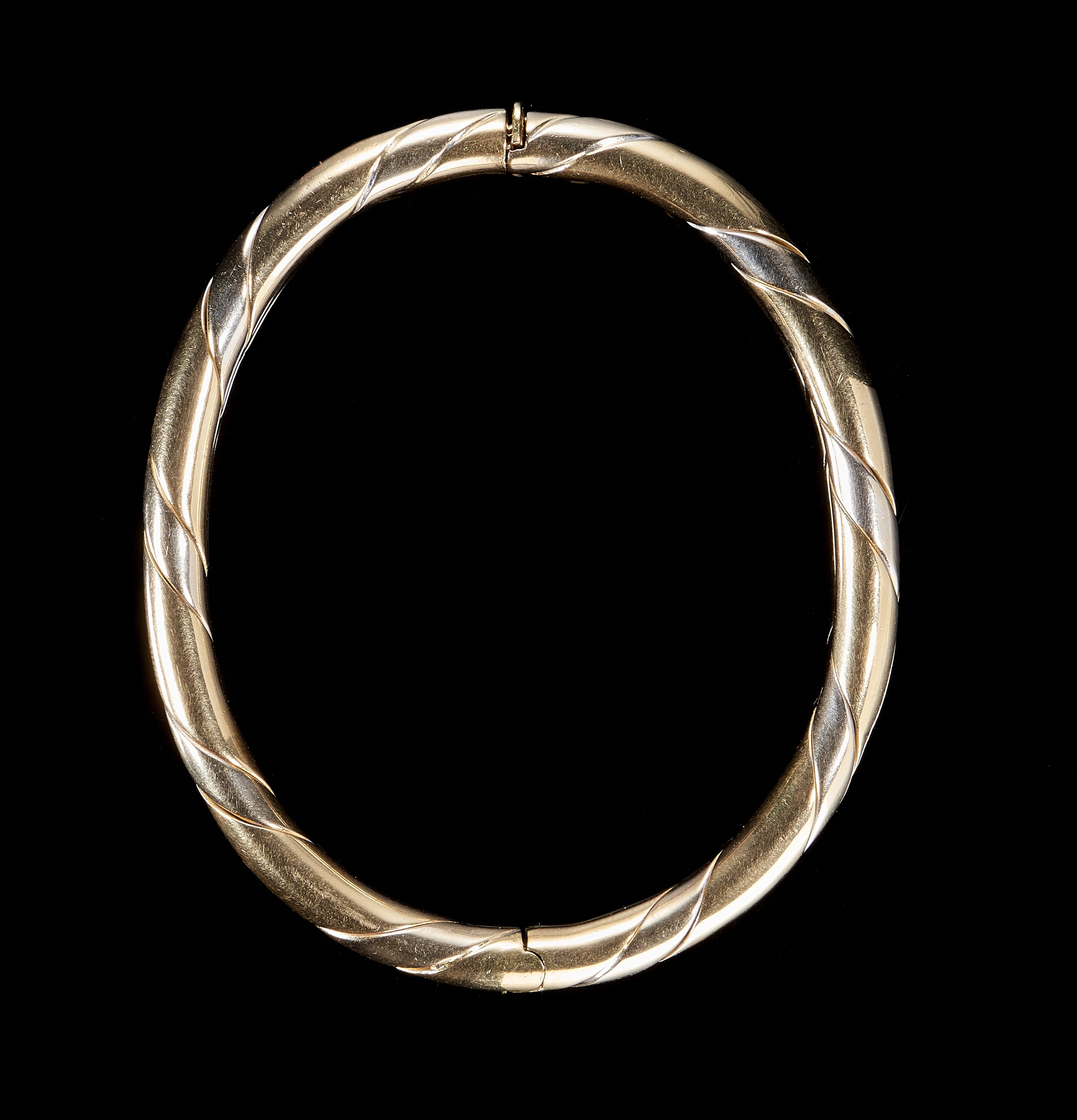 Porcelaine émaillée bleu blanc, cercles de laiton, D 26 cm