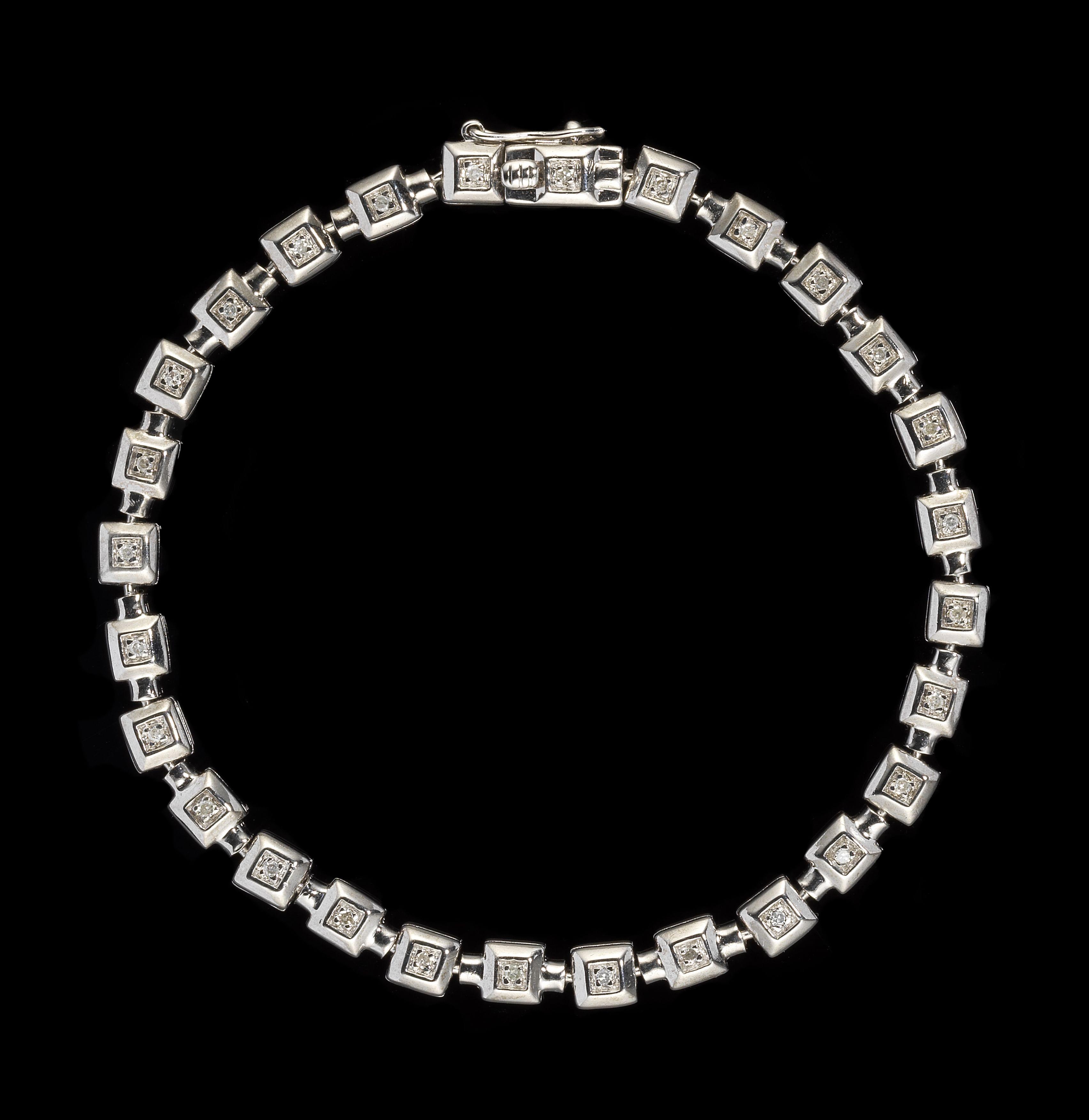 3500. *Bracelet ligne composé de motifs carrés sertis de diamants (total env. 0,25 ct)