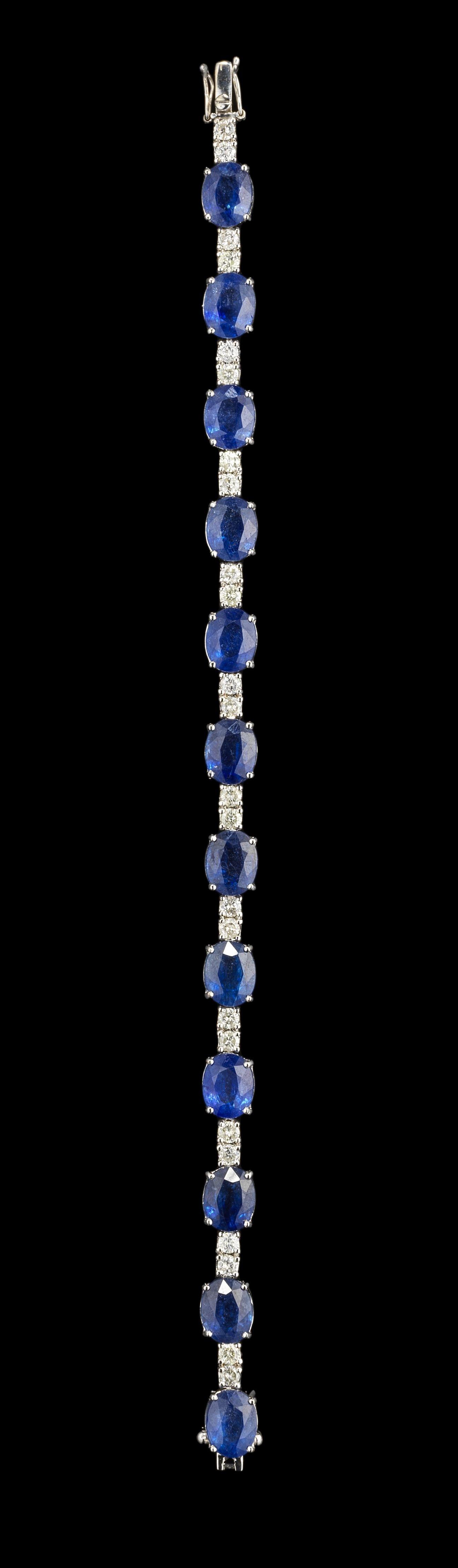 224. *Bracelet ligne composé de saphirs taille ovale (env. 31 ct) alternés de diamants (env. 2,1 ct)