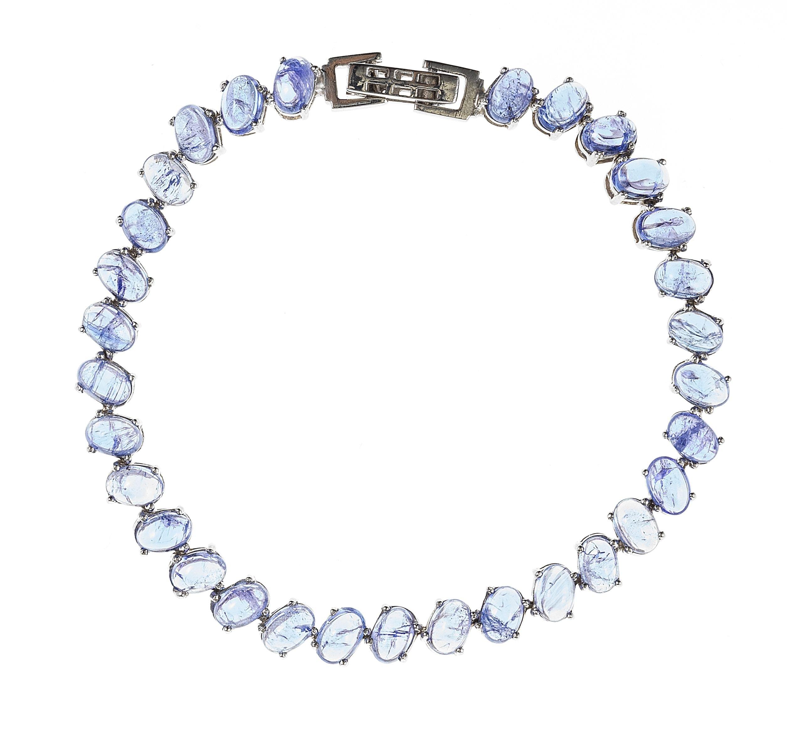 3085. *Bracelet ligne composé de tanzanites taille cabochon serties en biais