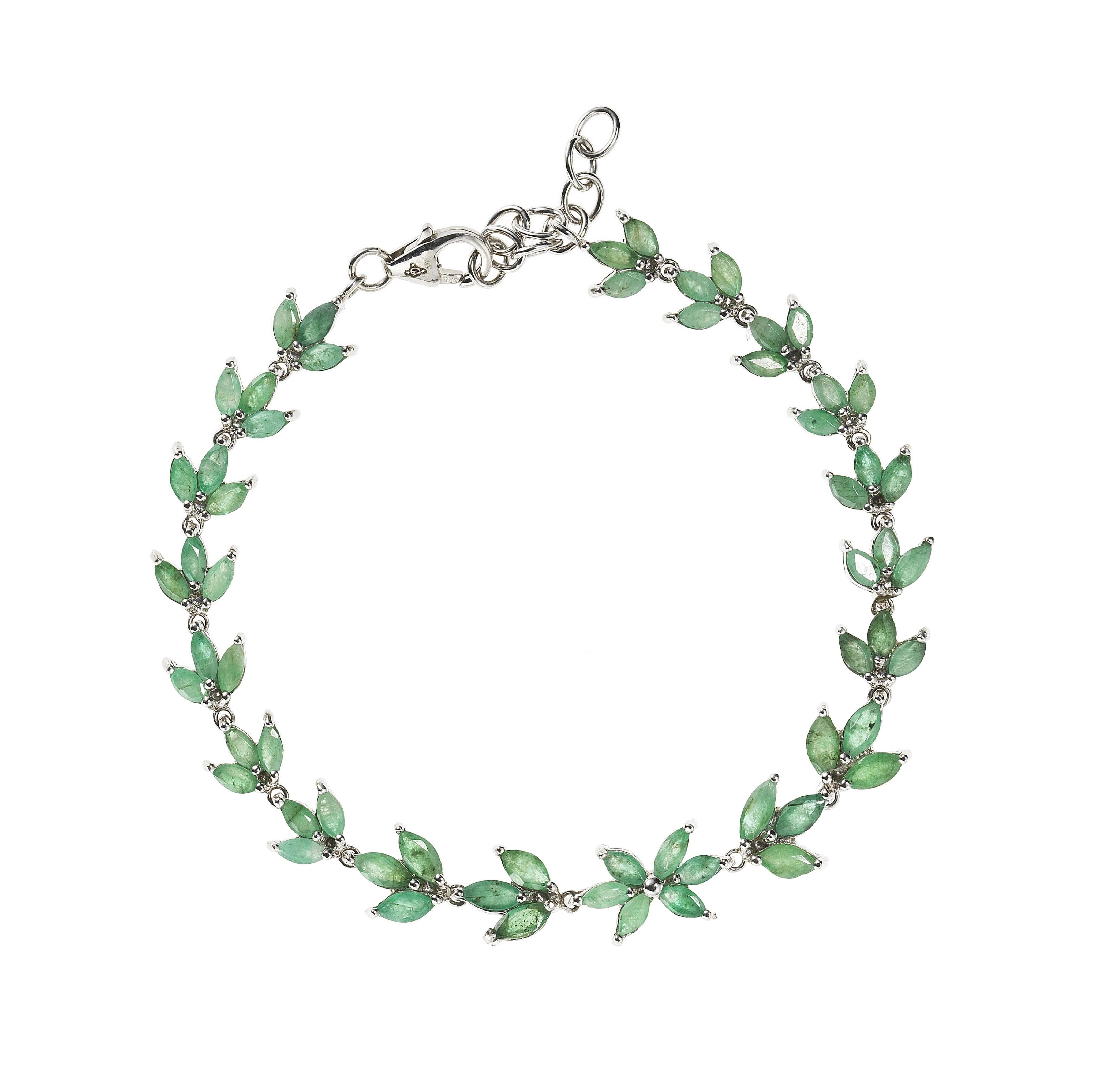 3064. *Bracelet ligne serti d'émeraudes taille marquise formant un motif floral (env. 3 ct)