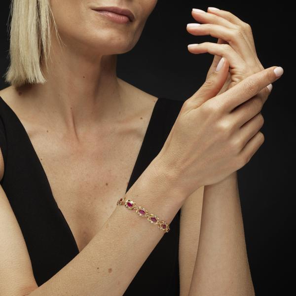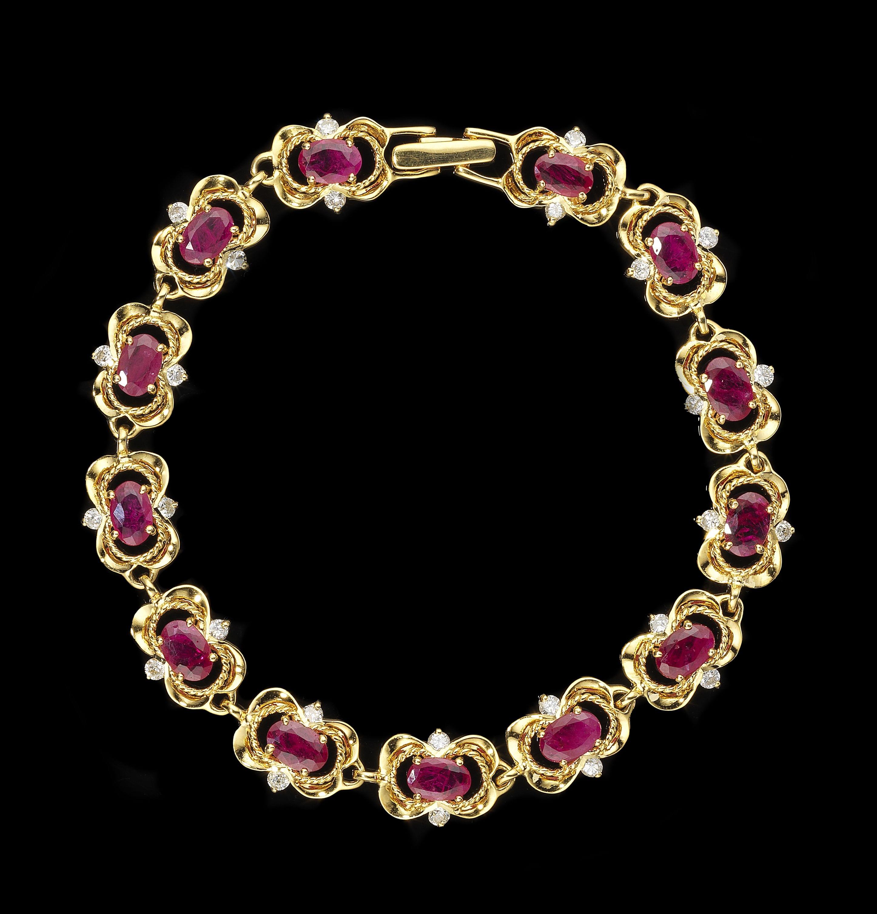 182. *Bracelet ligne serti de rubis du Mozambique taille ovale (total 5,97 ct) rehaussés de diamants