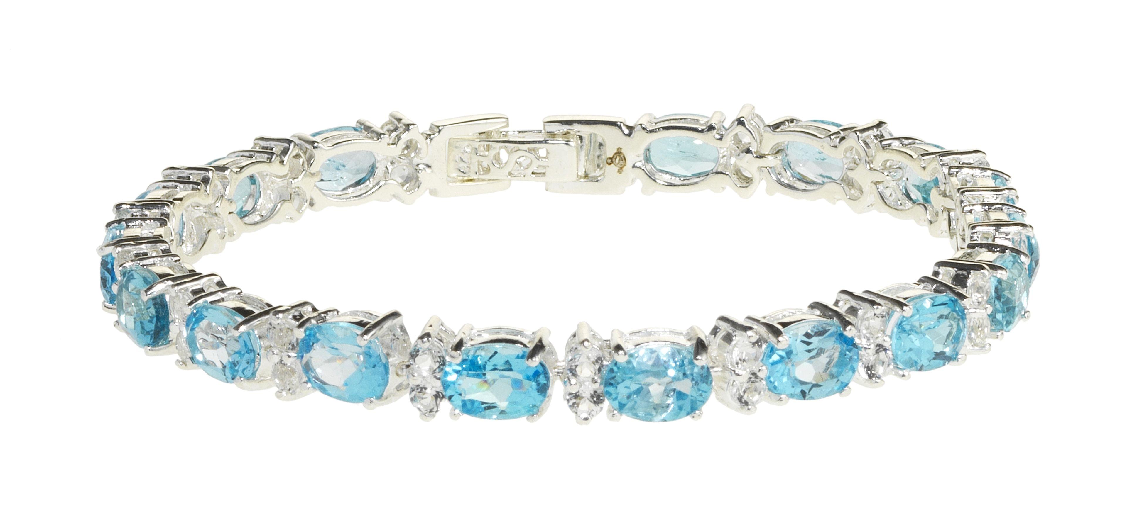 3324. *Bracelet ligne serti de topazes bleues taille ovale alternées de topazes blanches