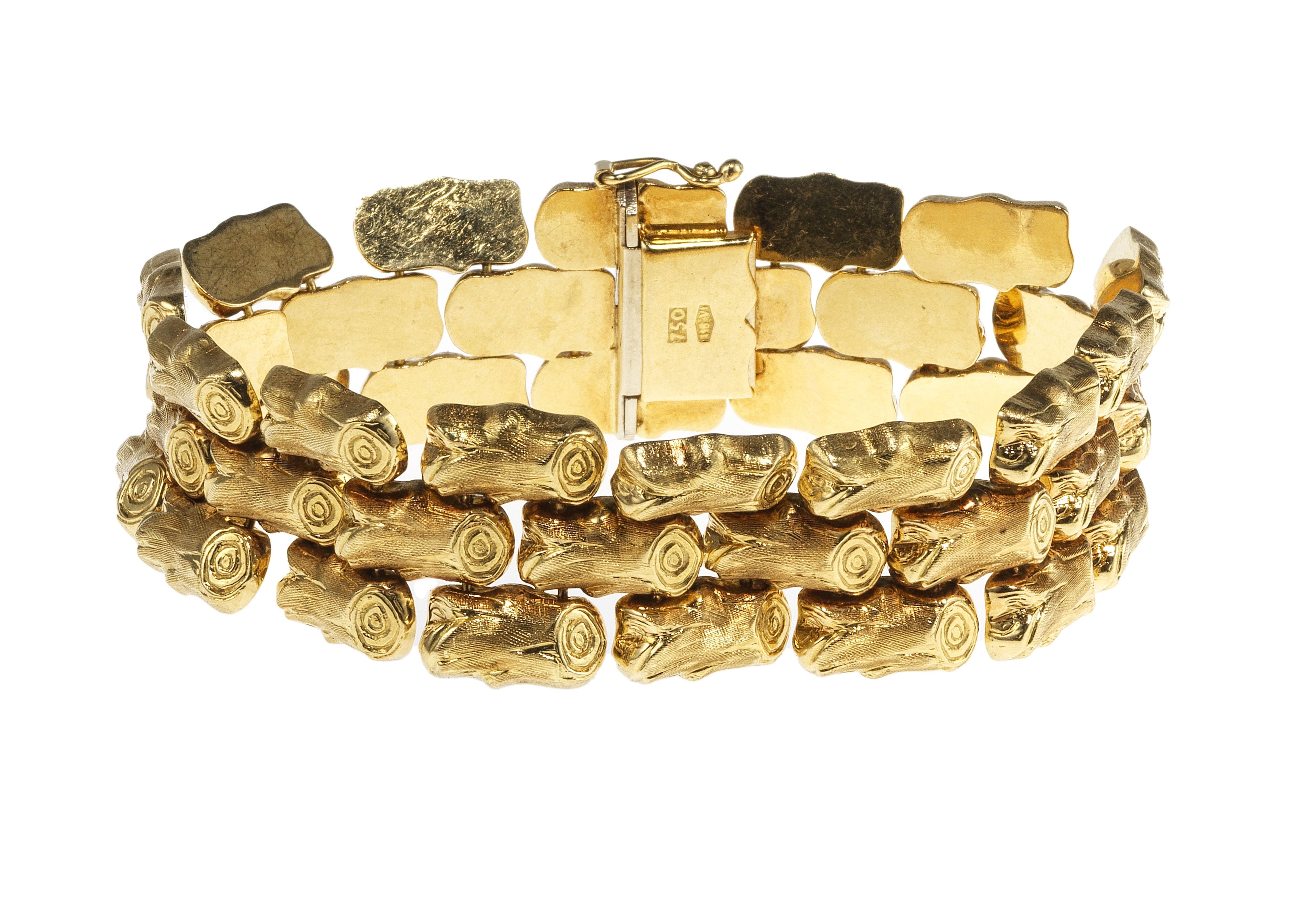 3457. Bracelet manchette composé de motifs de bambous stylisés