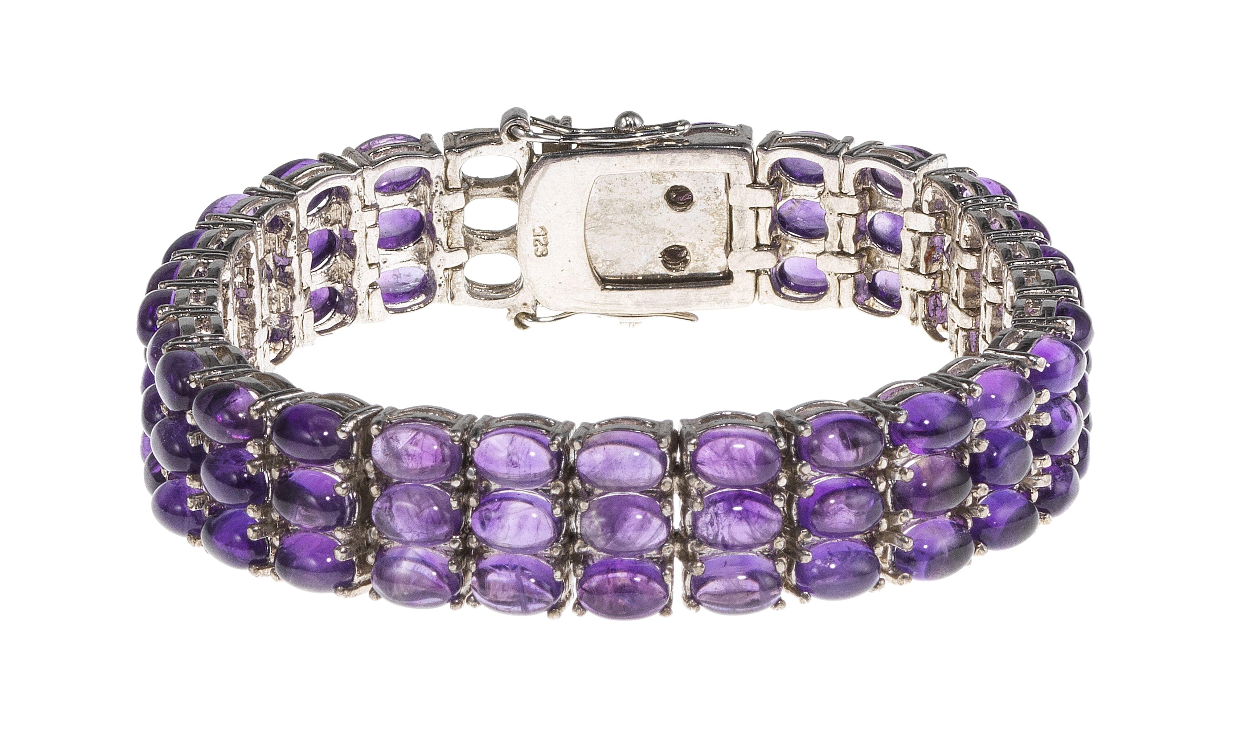 3261. *Bracelet manchette composé de trois rangs d'améthystes taille cabochon ovale