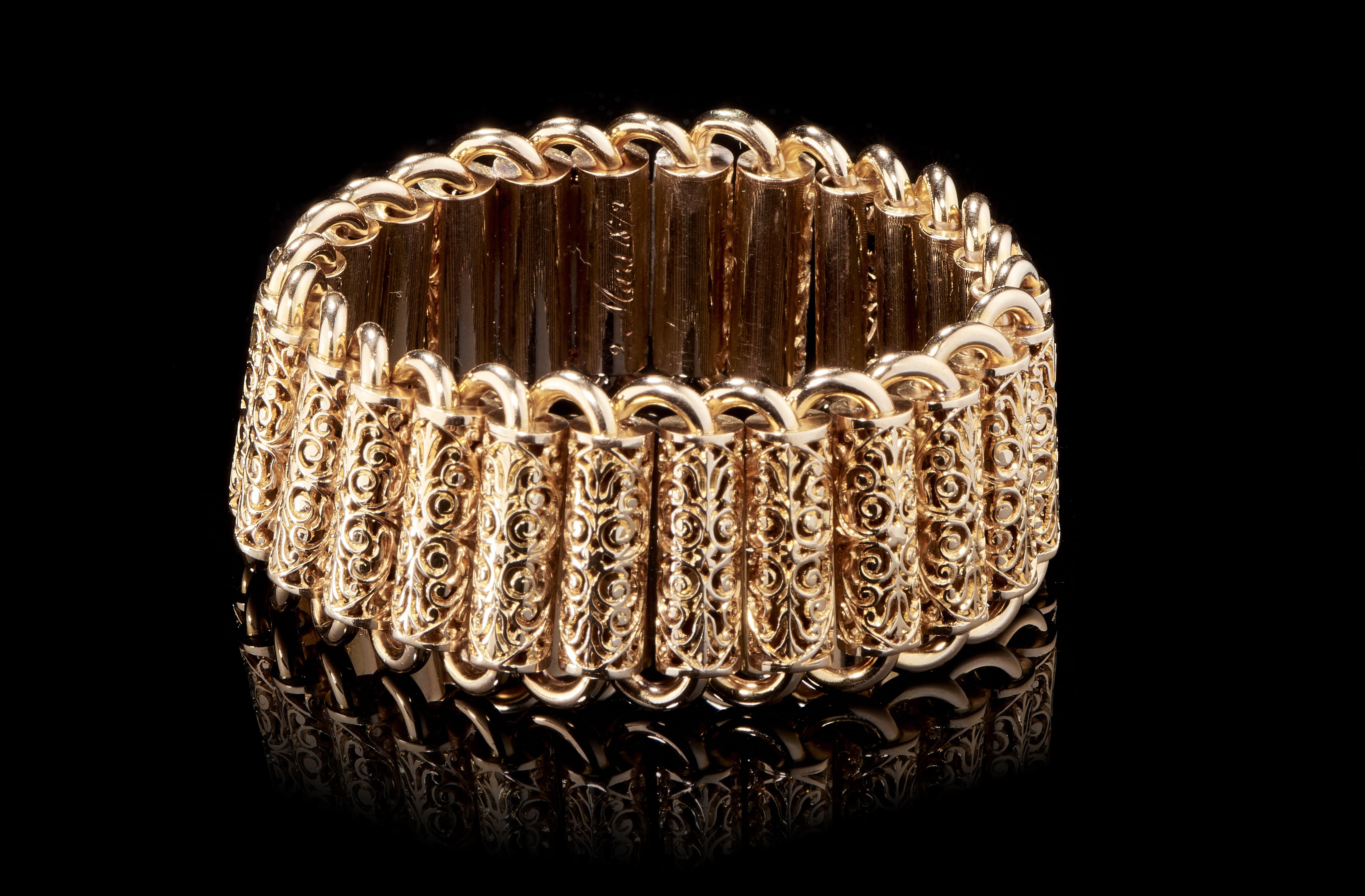 616. Bracelet manchette souple à maille fantaisie ciselée