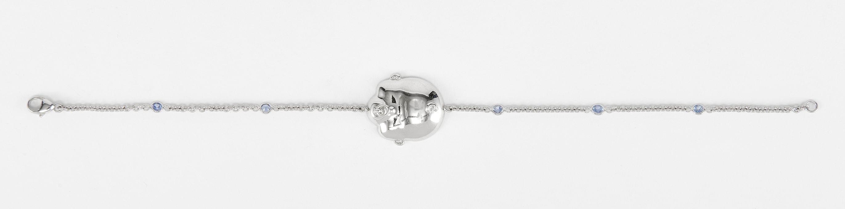 3303. Bracelet retenant un motif de visage de bébé et ponctué de petits saphirs