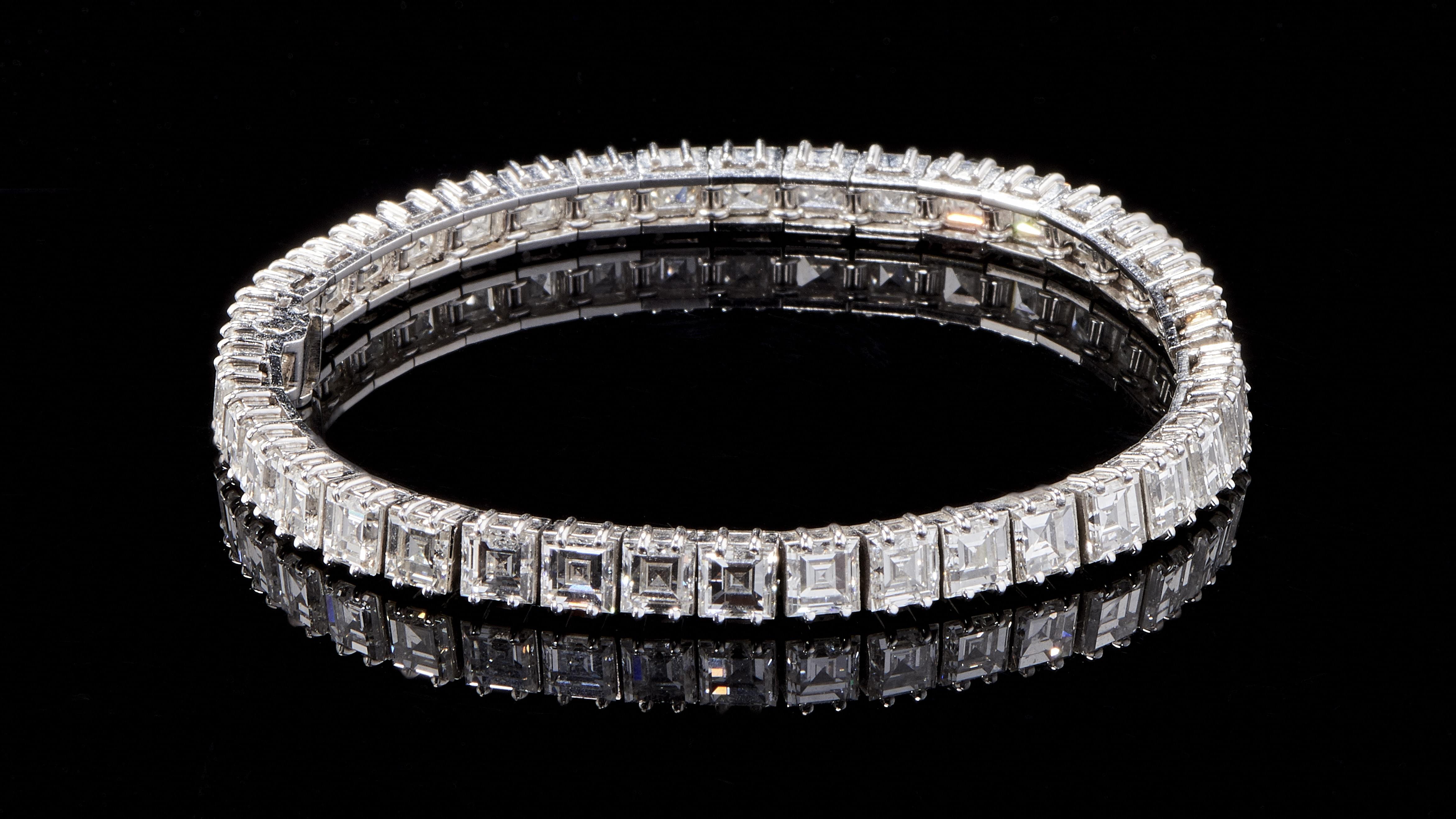 724. Bracelet rivière serti de diamants taille princesse (env. entre 15 et 18 ct)