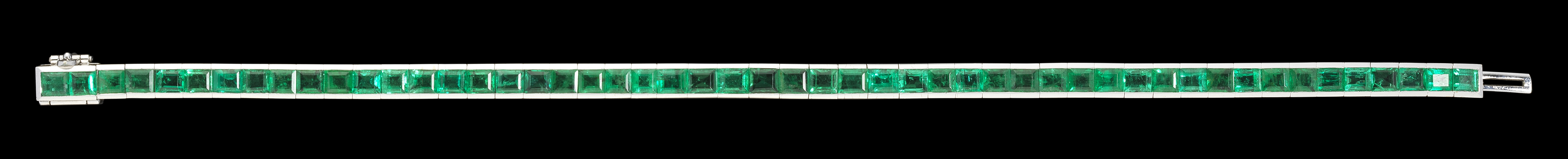 28. Bracelet serti d'une ligne d'émeraudes calibrées