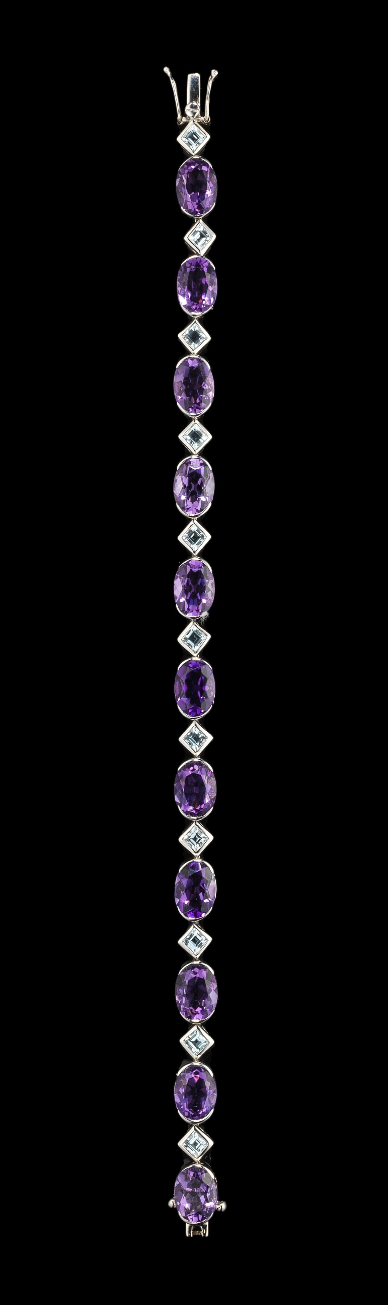 259. *Bracelet serti d'améthystes taille ovale (env. 16,5 ct) séparées d'aigue marines taille princesse