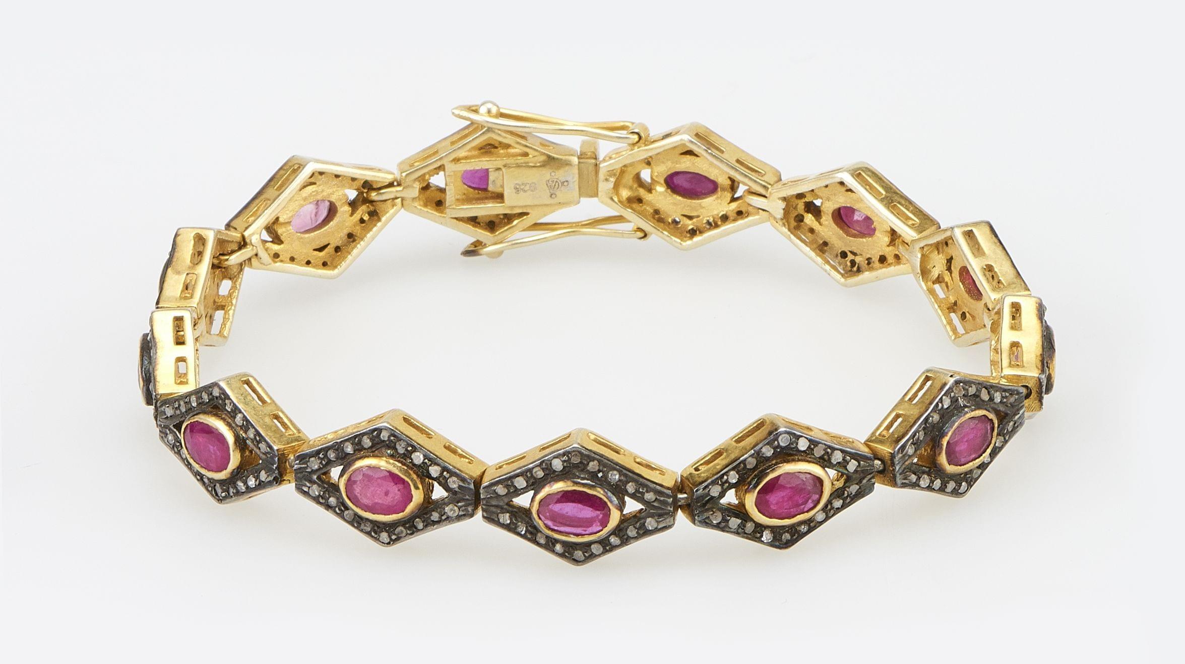 Argent noirci et vermeil 925, L 20 cm, accompagné d'un certificat GFCO indiquant un traitement thermique pour les rubis