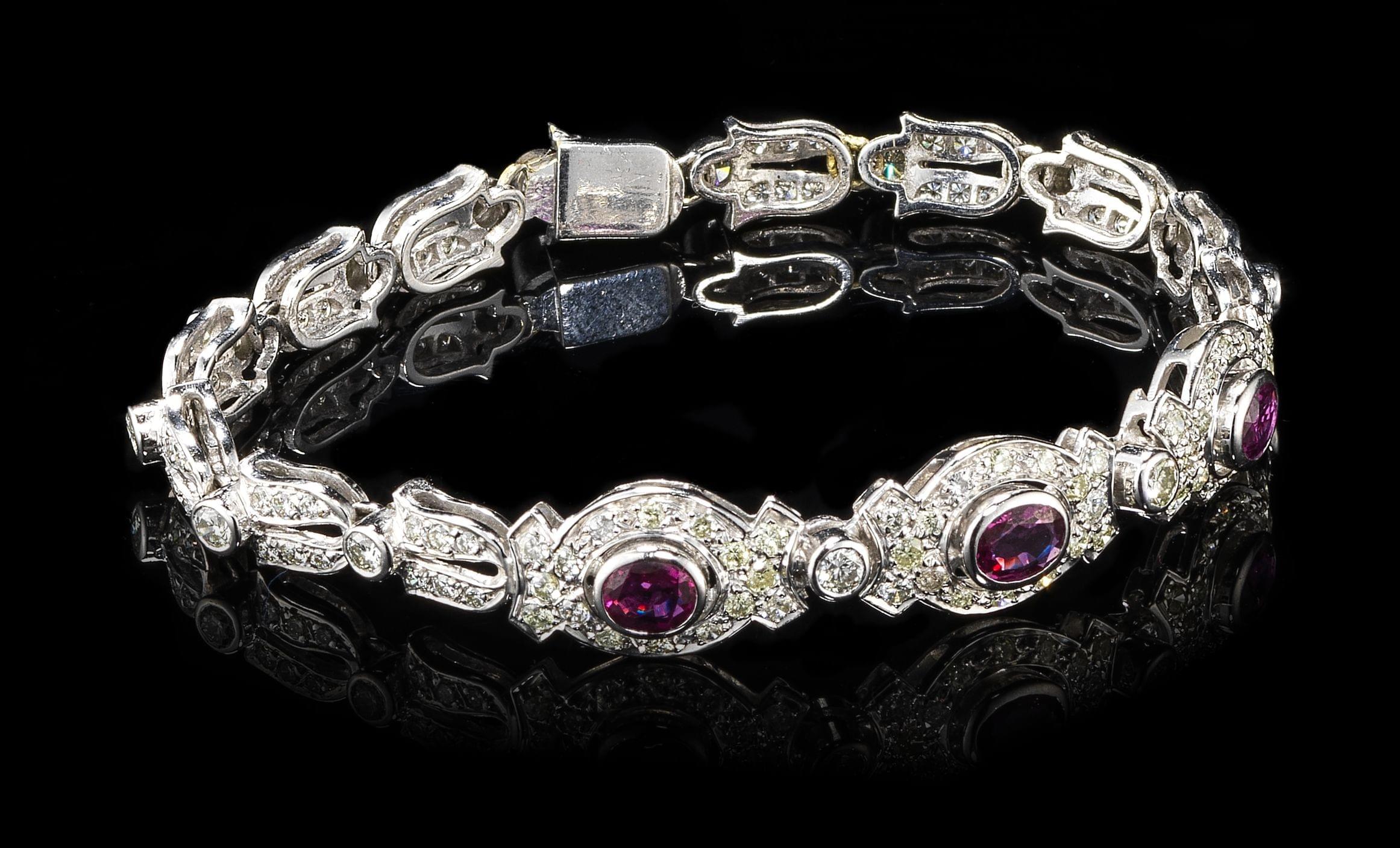 246. Bracelet serti de rubis taille ovale (env. 1.2 ct) et pavé de diamants (entre 4 et 5 ct)