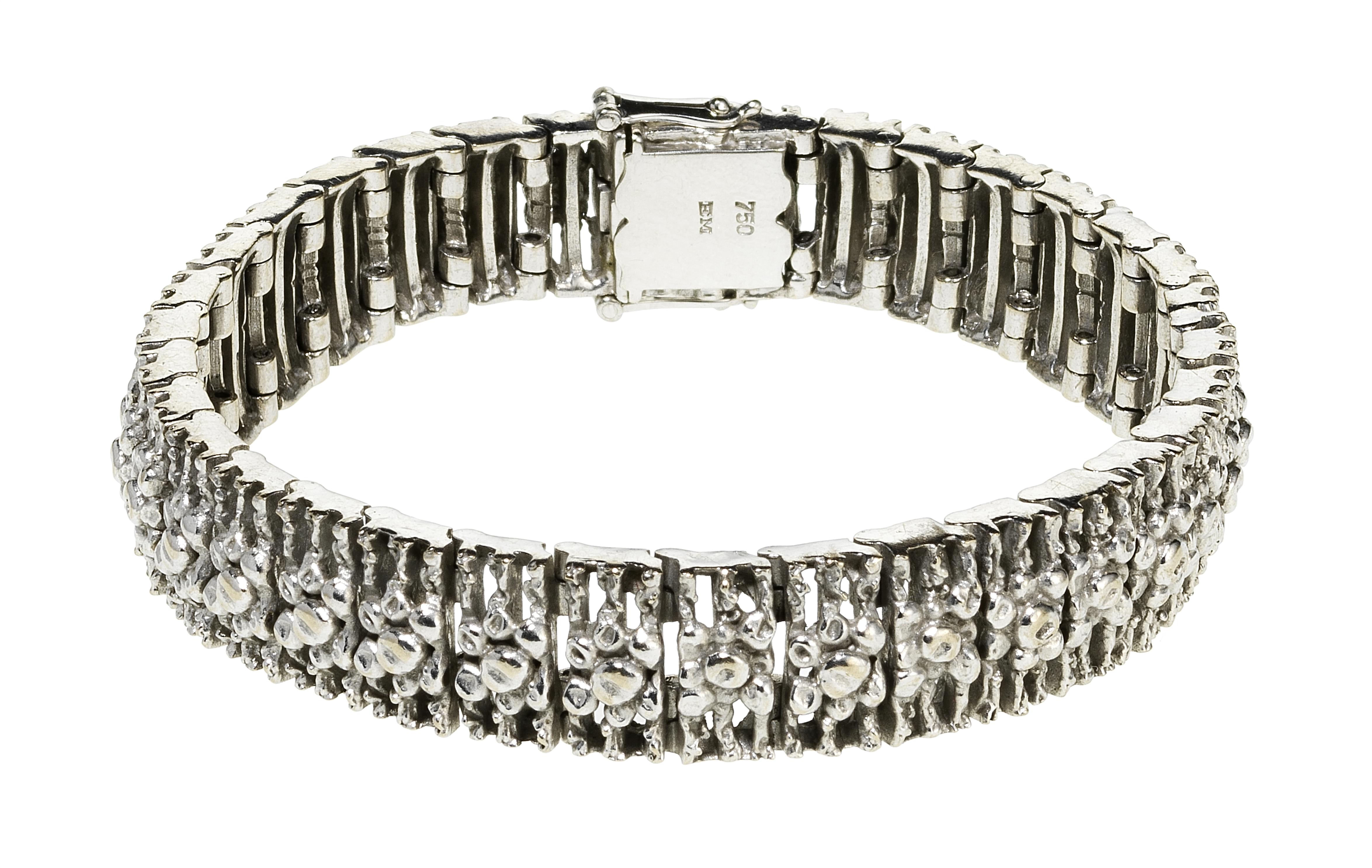 Or gris 750, travail anglais, D int. 5,5 cm, 26 g