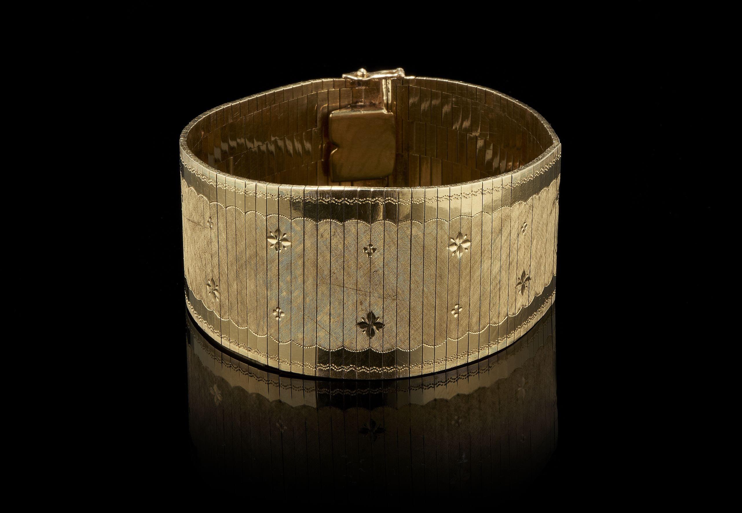 Cadran gris, aiguilles et index bâtons noirs, or gris 750, 26x21...