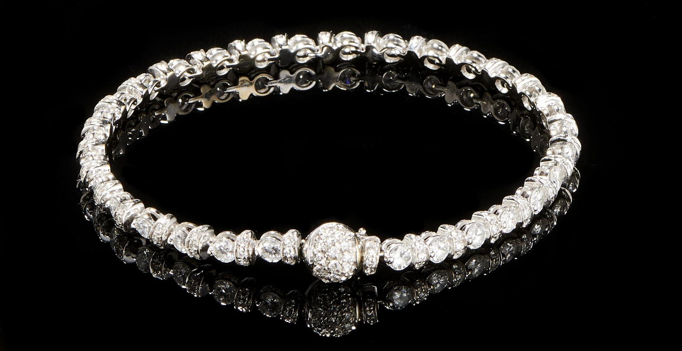 145. Bracelet tennis serti de diamants alternés de motifs pavés de diamants (env. 3,5 ct)