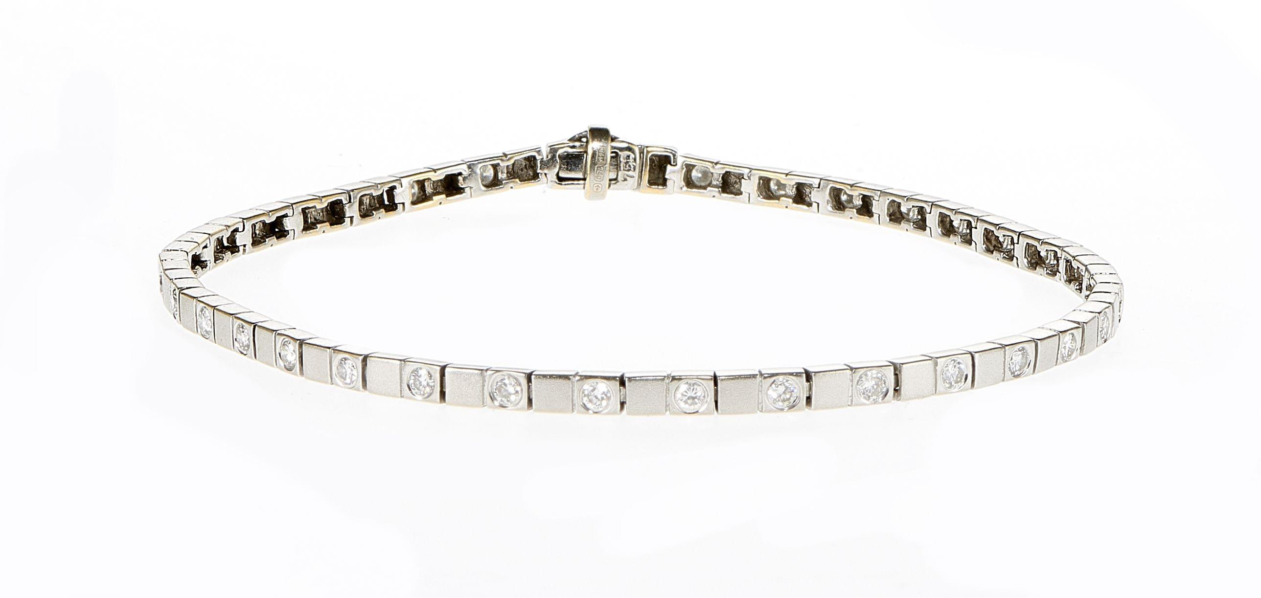 4299. Bracelet tennis serti de diamants alternés de motifs en or satiné (env. 1 ct)