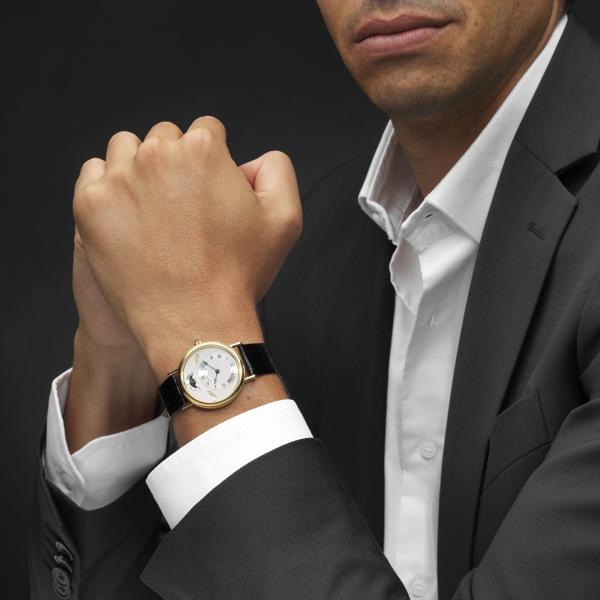 Cadran argenté guilloché, aiguilles bleuies, chiffres romains no...