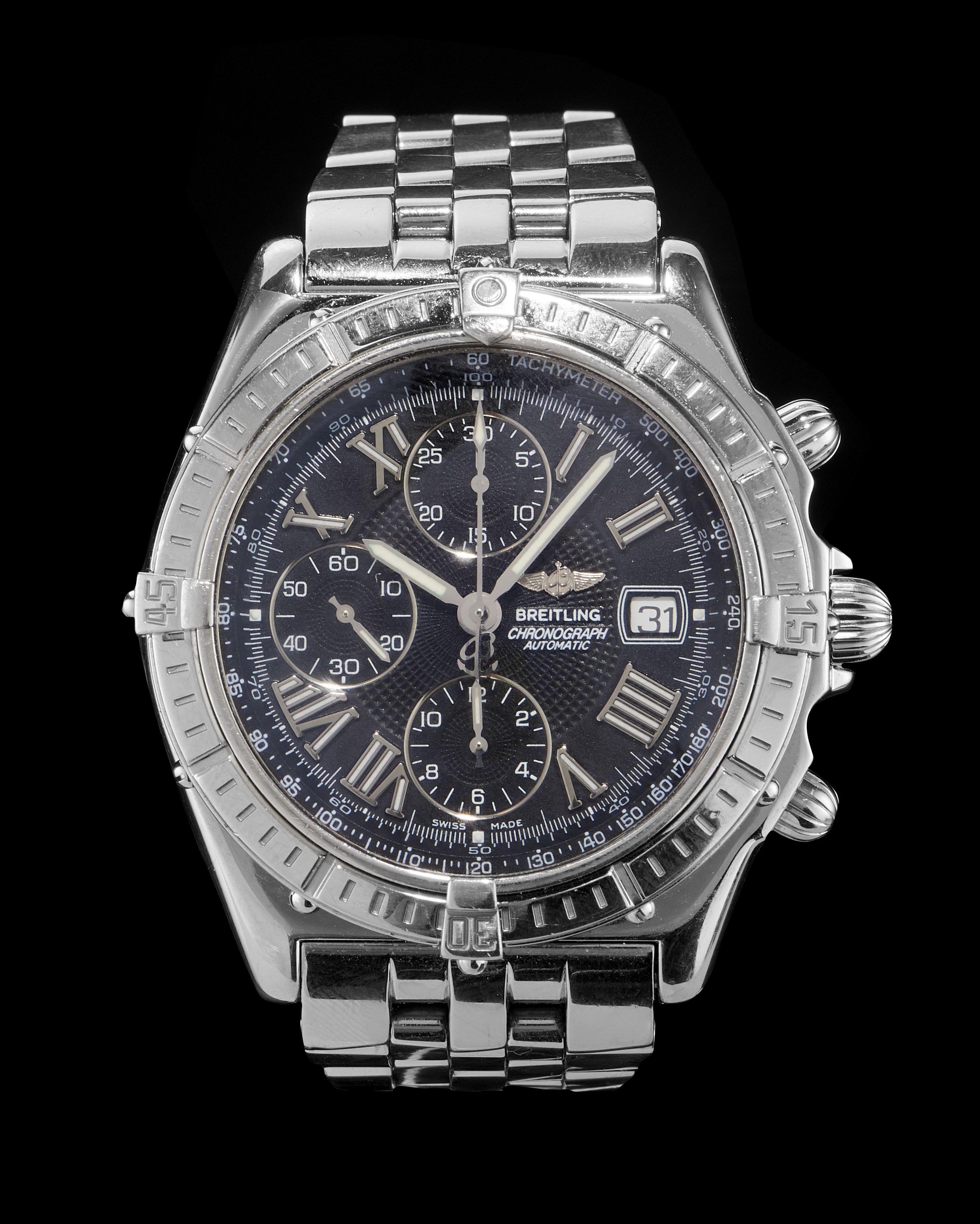 Cadran crème, aiguilles dorées, aiguille du chronomètre bleue, c...