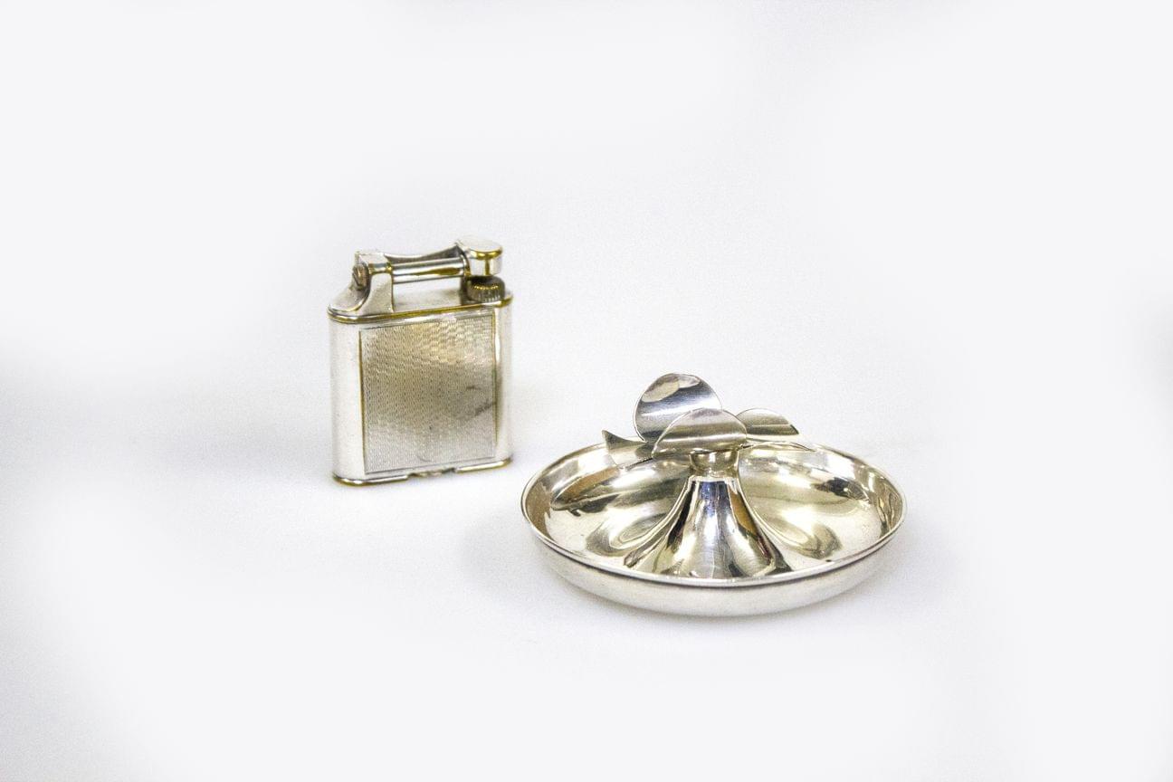 3225. Boîte à craie de billard, deux étuis à allumettes et un briquet,...