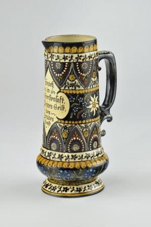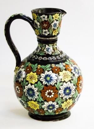 Terre vernissée à décor incisé de fleurs, Thoune XIXe s, H 35 et...