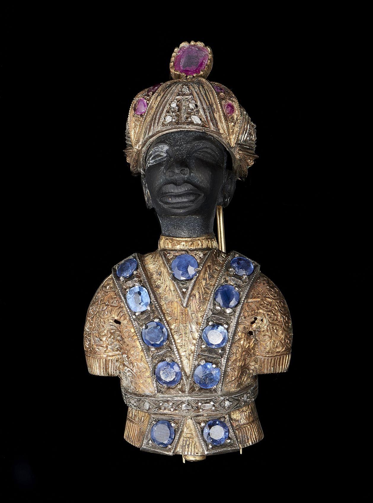 102. Broche à motif buste de maure en turban serti de saphirs et de rubis