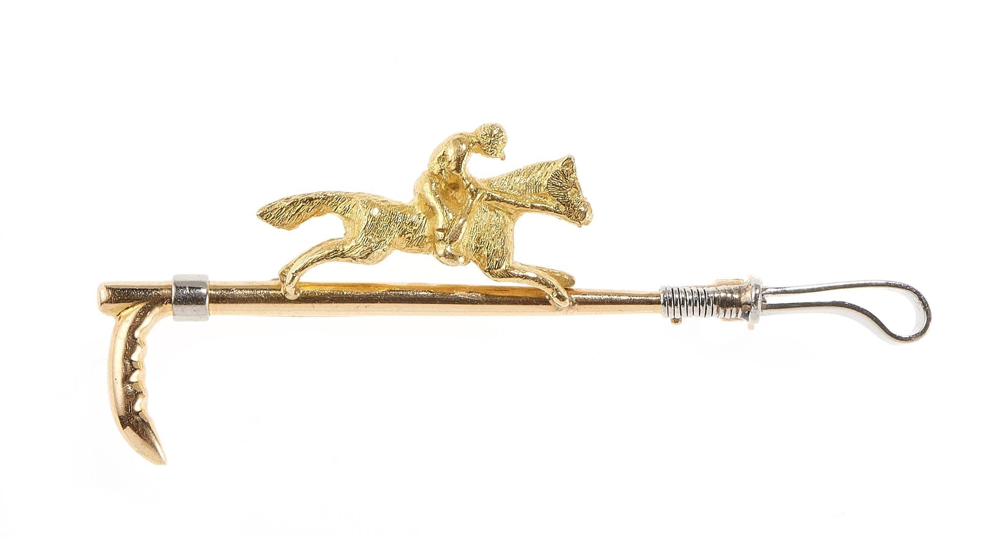 4240. Broche à motif de canne de polo surmontée d'un cavalier
