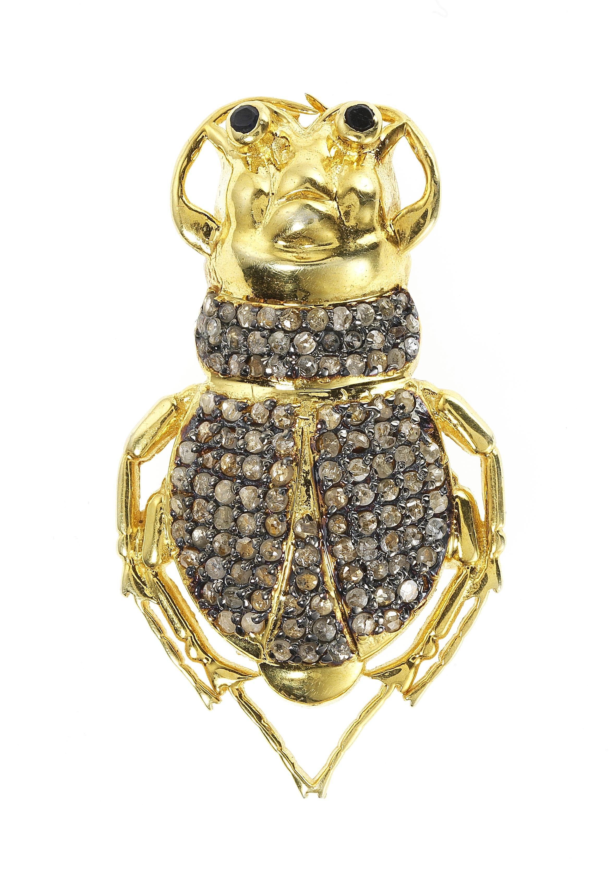 Aux yeux sertis d'émeraudes, à la tête sertie d'un rubis taille...