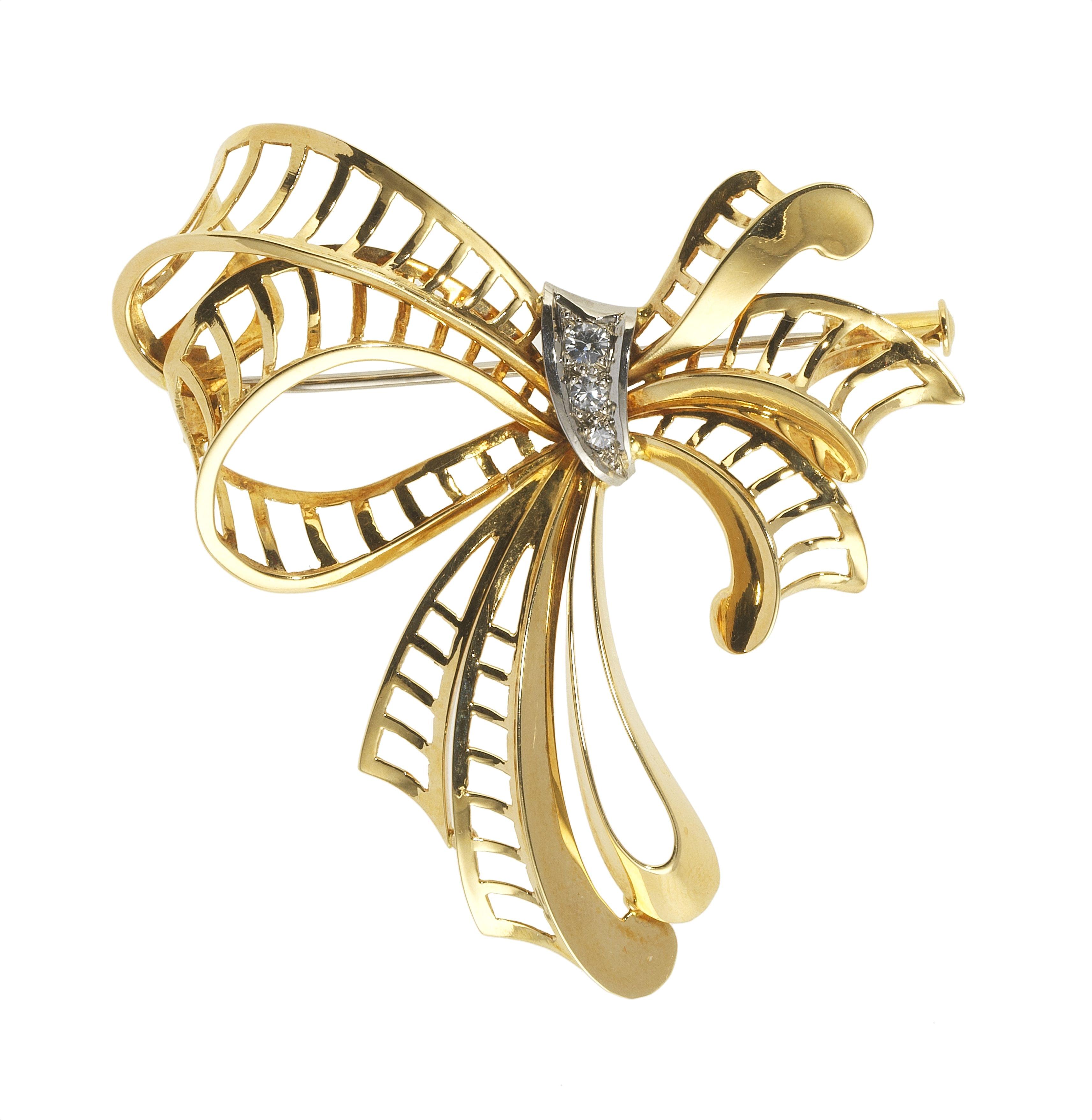 3337. Broche ajourée à motif de nœud sertie d'une ligne de diamants