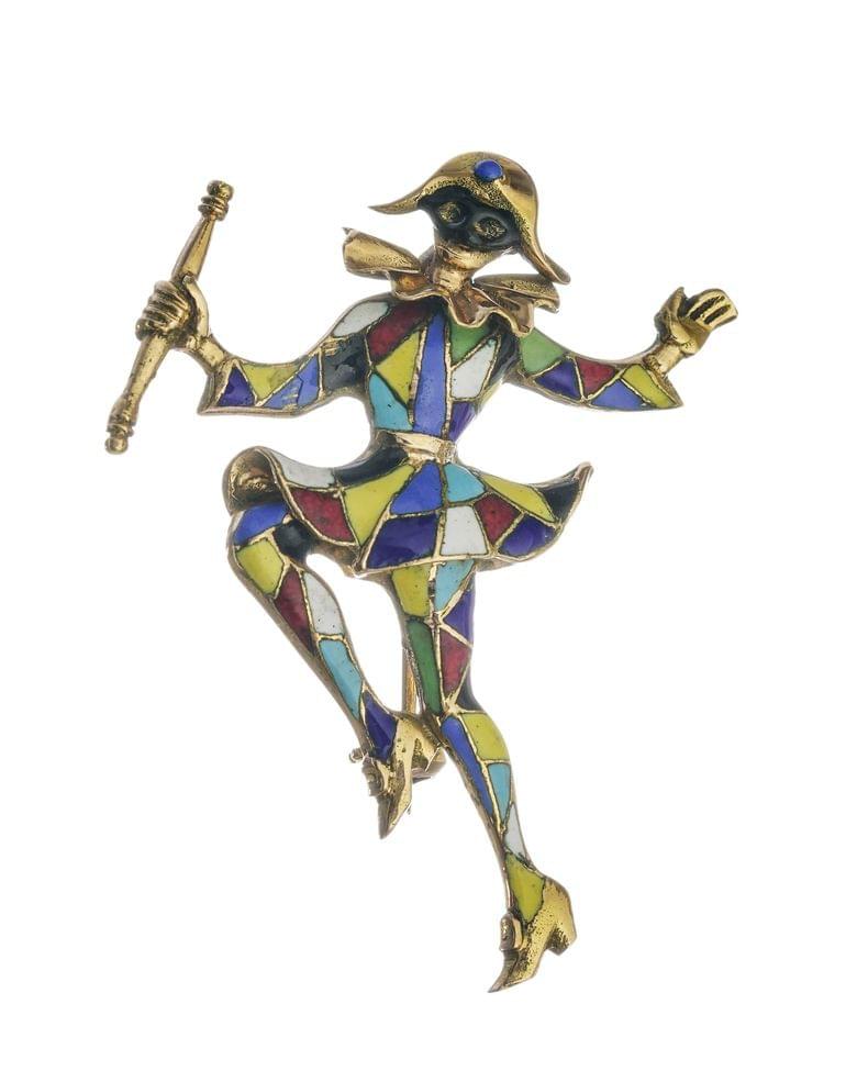 219. Broche à motif de chat s'étirant, aux yeux sertis d'émeraudes et...