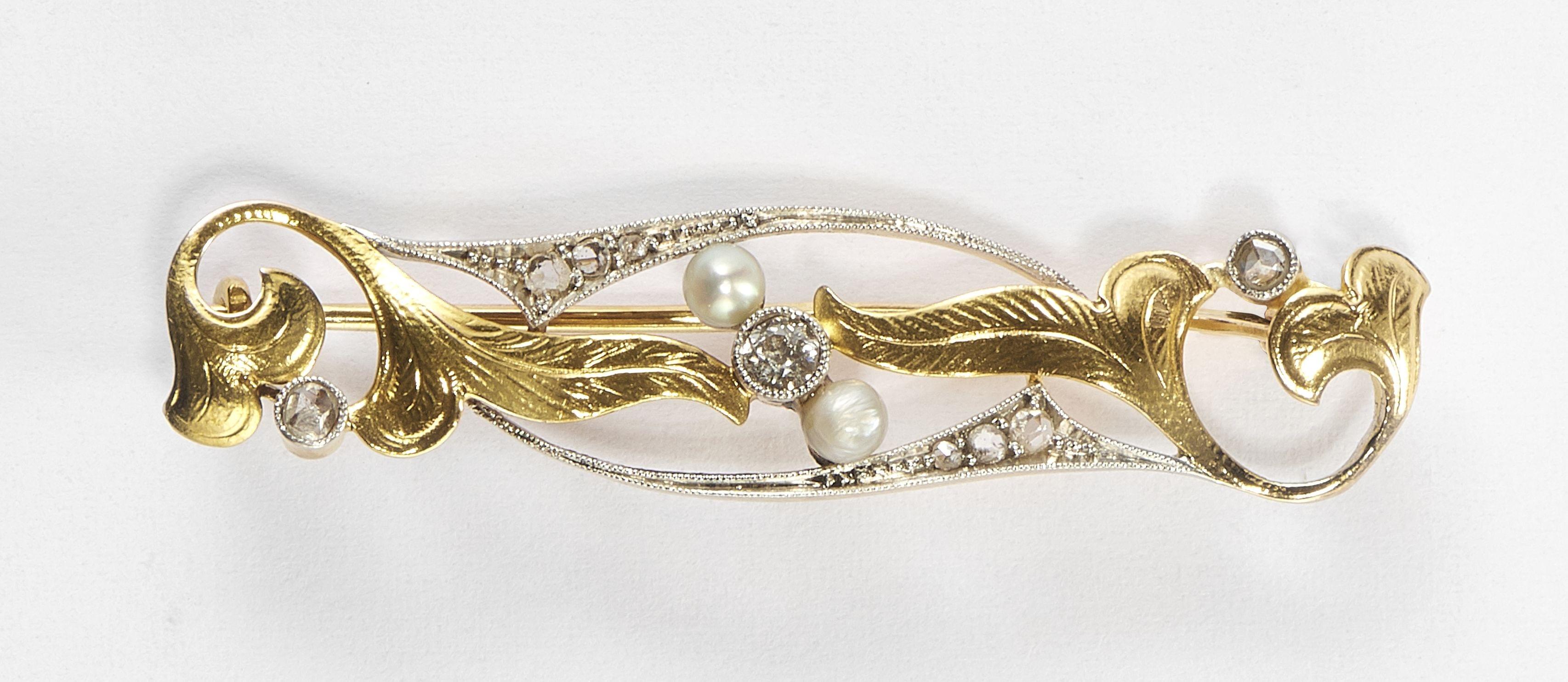 46. Broche de corsage ajourée pavée de diamants (env. 1,5 ct)