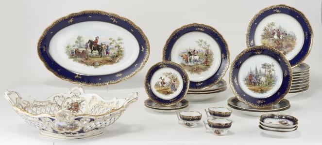 845. Service de table à motif de scènes de chasse au XVIIIe et marli...