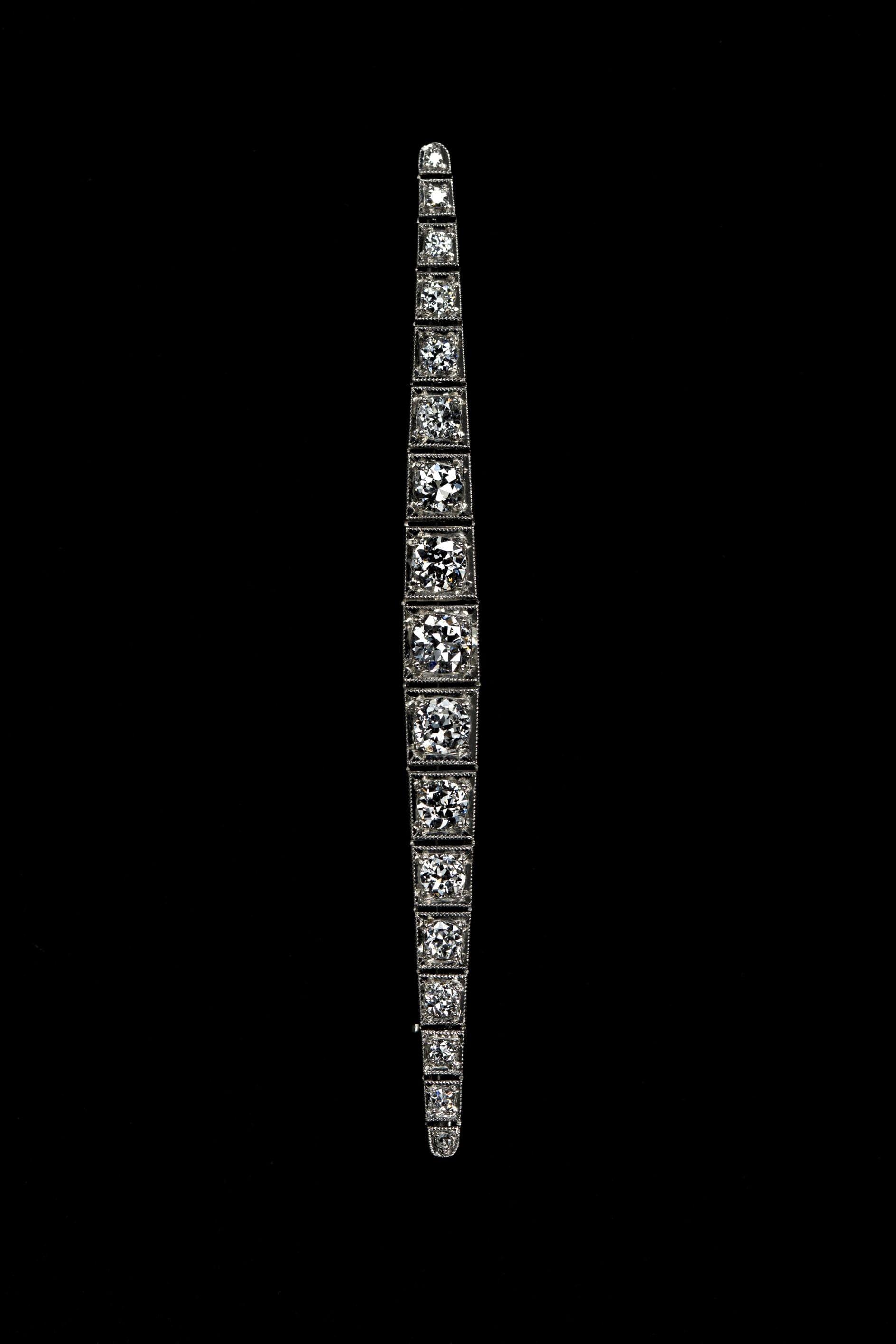 775. Broche barrette sertie de diamants taille ancienne en chute (env. 1,3 ct)