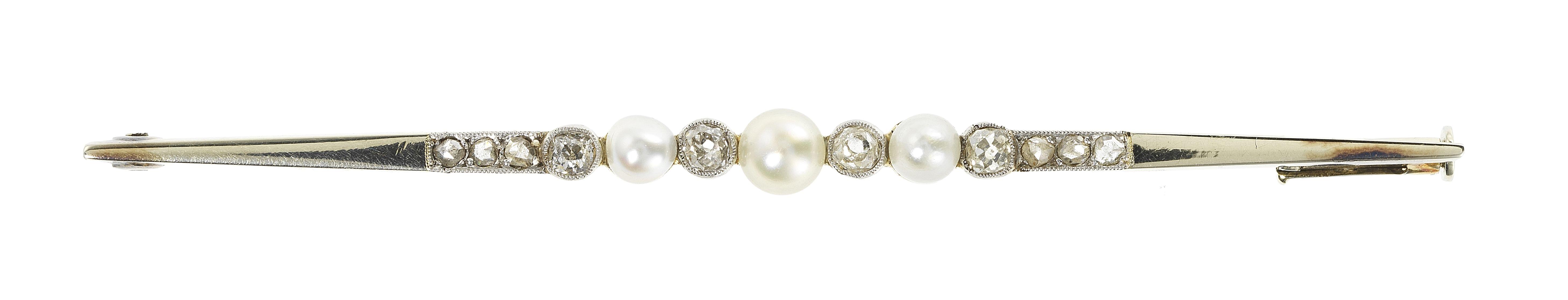 3169. Broche-barrette sertie de trois perles alternées de roses de diamant