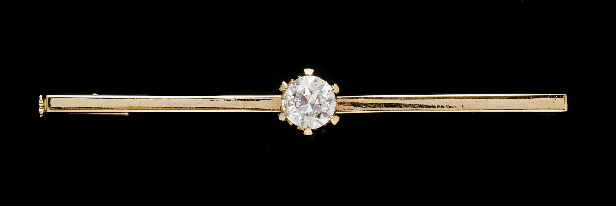 66. Broche barrette sertie d'un diamant taille ancienne (env. 1,2 ct)