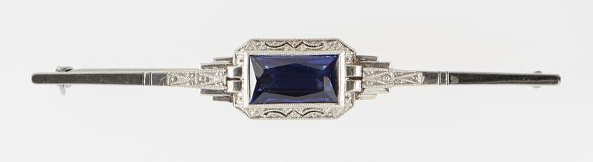 3186. Broche barrette sertie d'un saphir synthétique taille rectangle