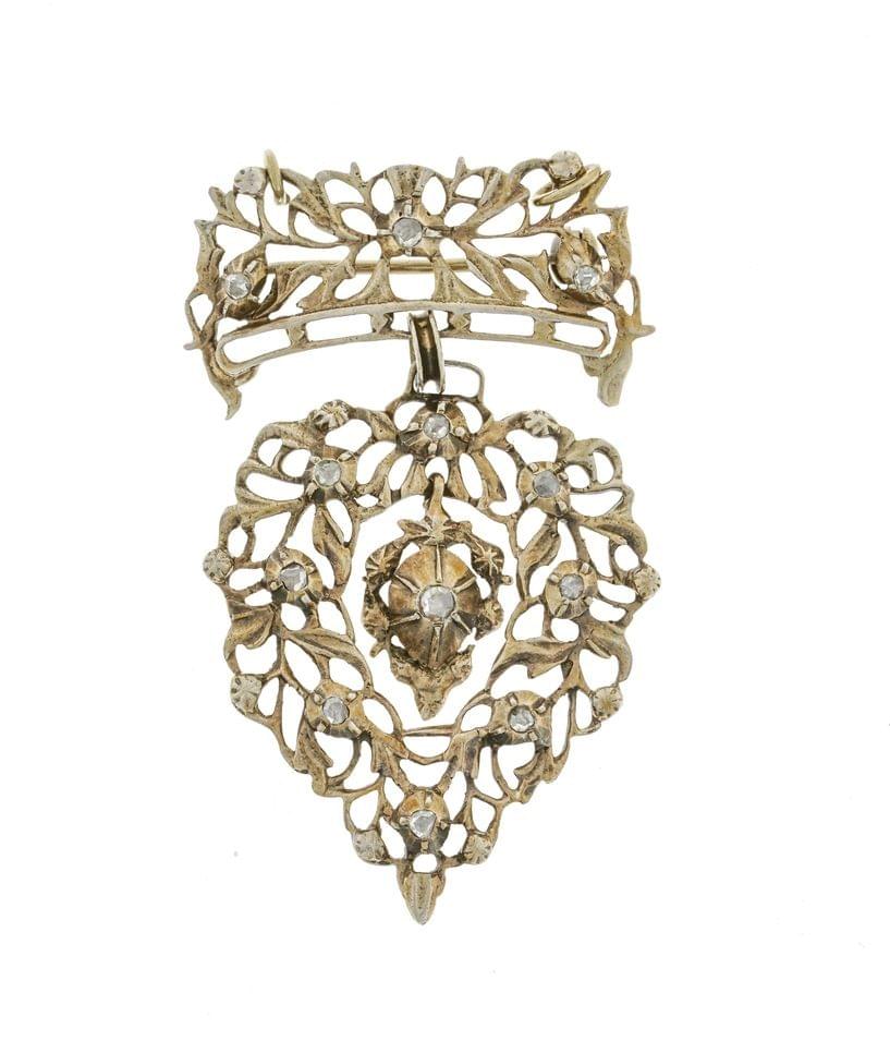 3045. Broche de corsage à motif ajouré serti de diamants en rose