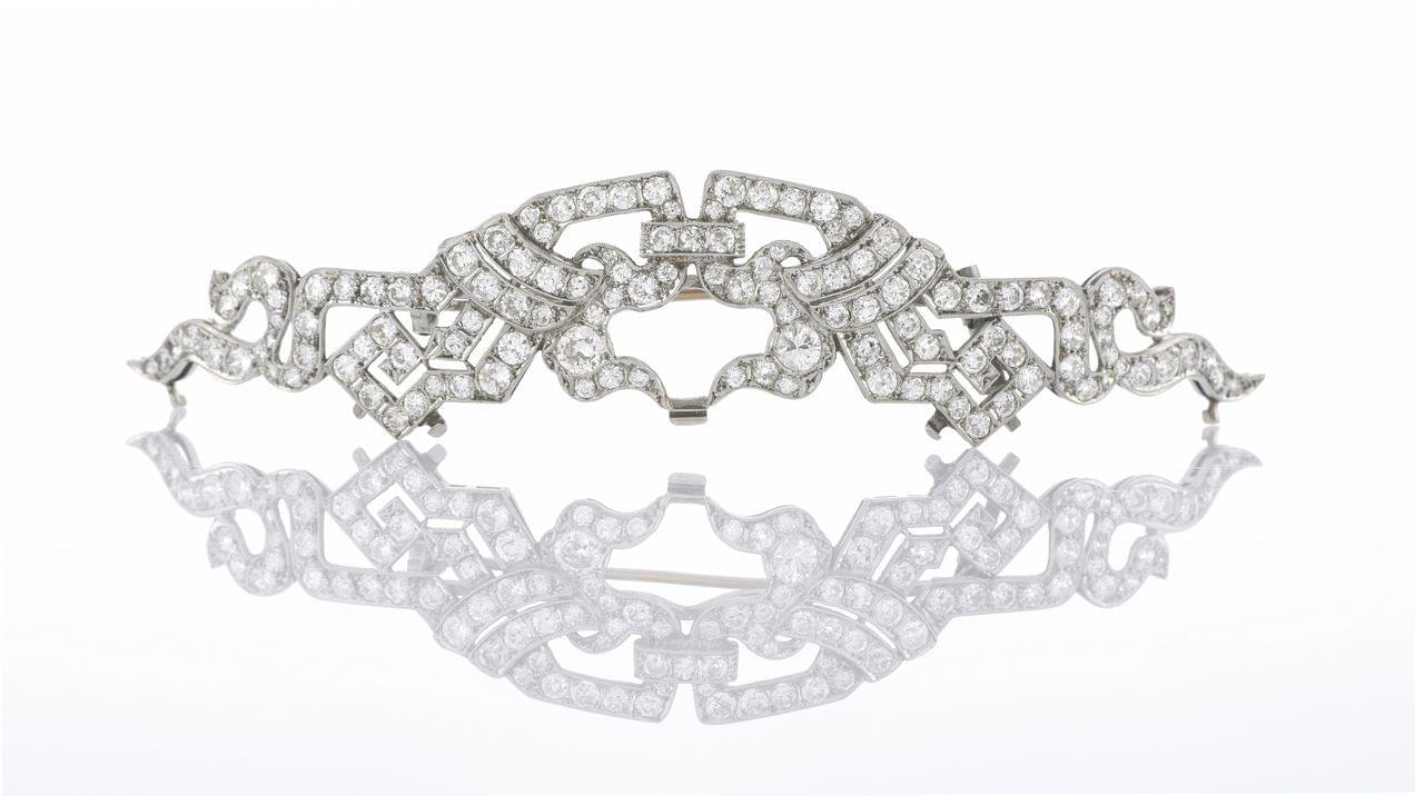 47. Broche début XXème à motif de rubans sertie de diamants