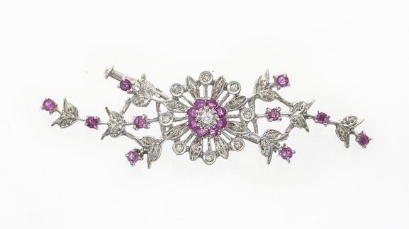 58. Broche fleur sertie de diamants et rubis