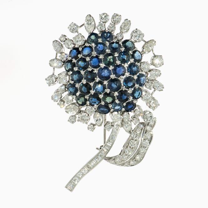 270. Broche formant un motif de fleur sertie de diamants (env 8.5 ct) et saphirs (env 15 ct)